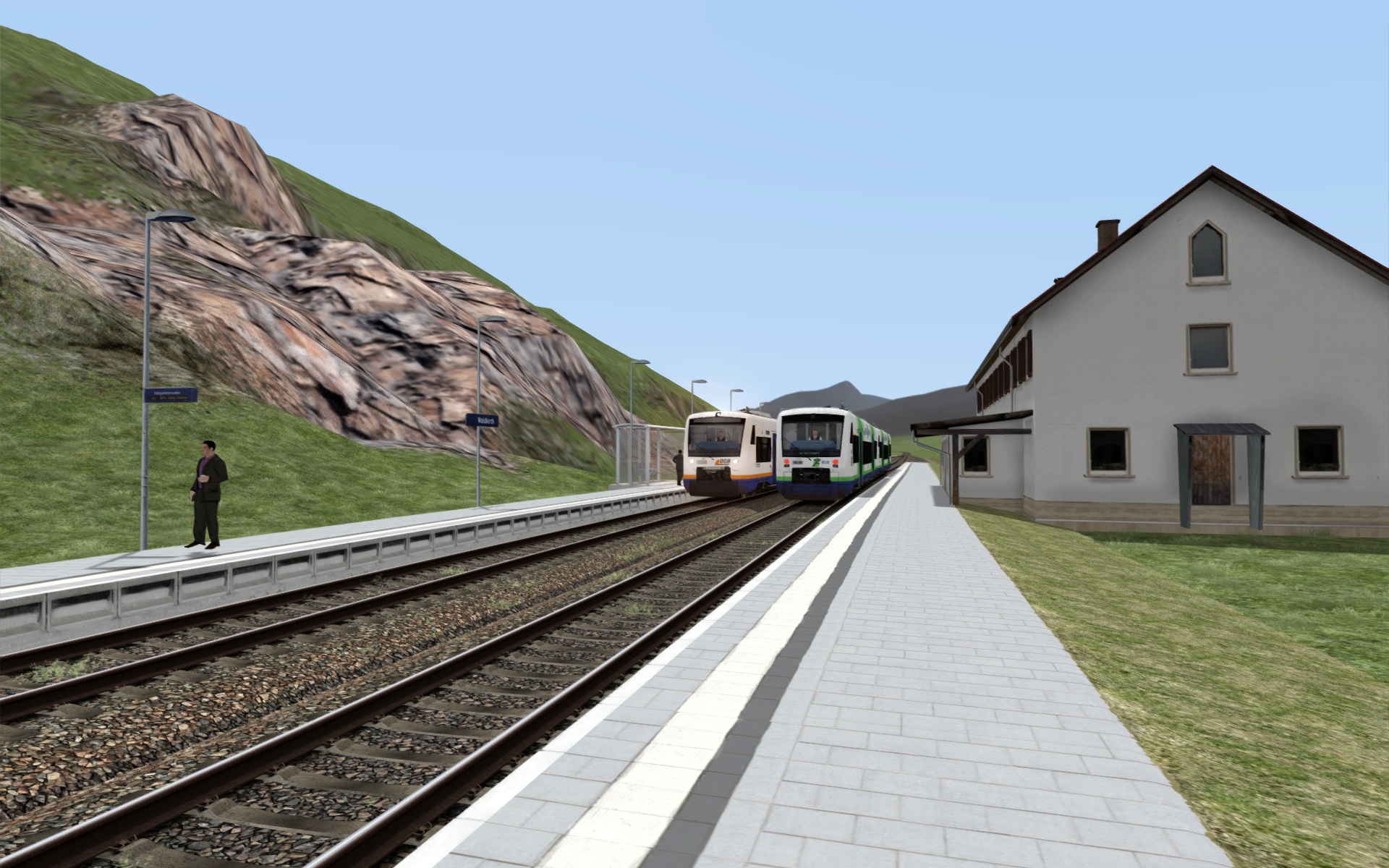 Um mich erst einmal vorzustellen, ich bin Nils und bin in diesem Forum relativ neu registriert. Zuvor haben ich Rail Sim Forum ohne eine Registrierung genutzt, da ich aktuell allerdings eine eigene Strecke plane und diese auch eventuell veröffentlichen möchte, habe ich mich registriert. Bei der zu entwickelnden Strecke handelt es sich um die Elztalbahn auch KBS 726 zwischen Elzach und Freiburg Hbf zum Zeitpunkt vor der Elektrifizierung in den Jahren 2017-2020 , jedoch konzentriere ich mich erst einmal auch den Teilabschnitt von 19,3 km zwischen Elzach und Denzlingen. Beim Bau der Strecke werden größentteils die Objekte der Strecke Konstanz-Villingen verwendet und vereinzelt Freeware Objekte. Aktuell baue ich übrigens erst einmal den vollständigen Streckenverlauf und versuche möglichst genau auf die Realität zu achten. Das heißt ich verwende zum einen Google Maps API Key zum Verlegen von Gleisen und Straßen, und zum anderen verwende ich die echten Höhendaten der Strecke. Um euch zum Abschluss noch einen kleinen Vorgeschmack auf die Strecke und meinen Baustil zu schaffen, hier ein paar Bilder vom bereits fast fertig gestellten Bahnhof Elzach.