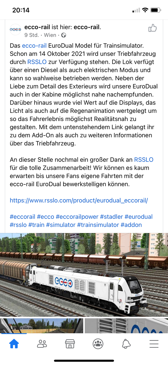 Ich erlaube mir mal den ganzen ECCO Rail FB Beitrag hier ran zuhängen. Scheinbar verfolgen Sie das ganze Projekt. Deshalb ist meine insgeheime Hoffnung, das RSSLO sich doch mal etwas Mühe bei der Fahrphysik gibt und nicht so einen Styrophorklotz dahin stellt. Beim Führerstand usw scheinen sie sich da schon etwas mehr Mühe gegeben zu haben, als bei bisherigen Modellen. Auf den bisher gezeigten Bildern, sah das doch schon recht gut aus.