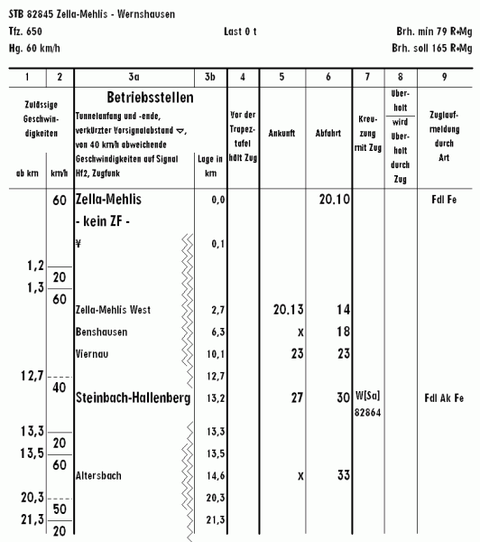 Den normalen Streckenfahrplan für den Personenverkehr findest du hier. KBS 950.