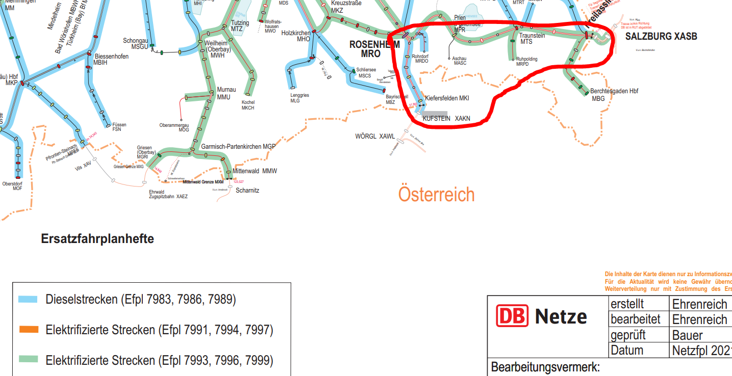 Für Salzburg-Kufstein würdest du also die elektrifizierten Strecken im Süden und Dieselstrecken benötigen!