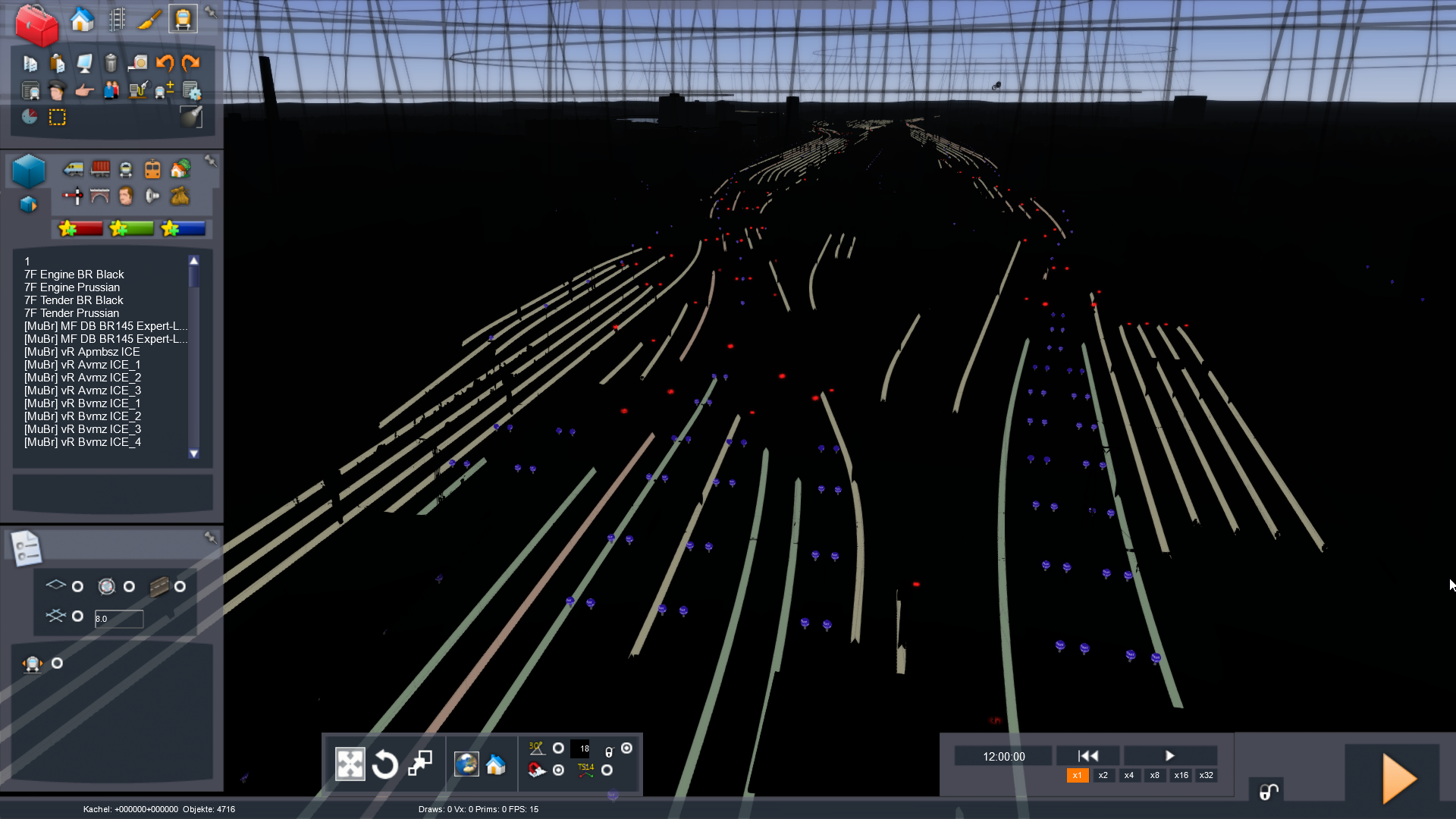 Nach einer Neuinstallation der Strecke funktioniert der Szenario-Editor dann wieder 1 - 2 mal, danach wird wieder alles schwarz. Der Objekt-Modus im Editor hingegen funktioniert einwandfrei, so dass ich in diesem Modus ohne Probleme bauen könnte.