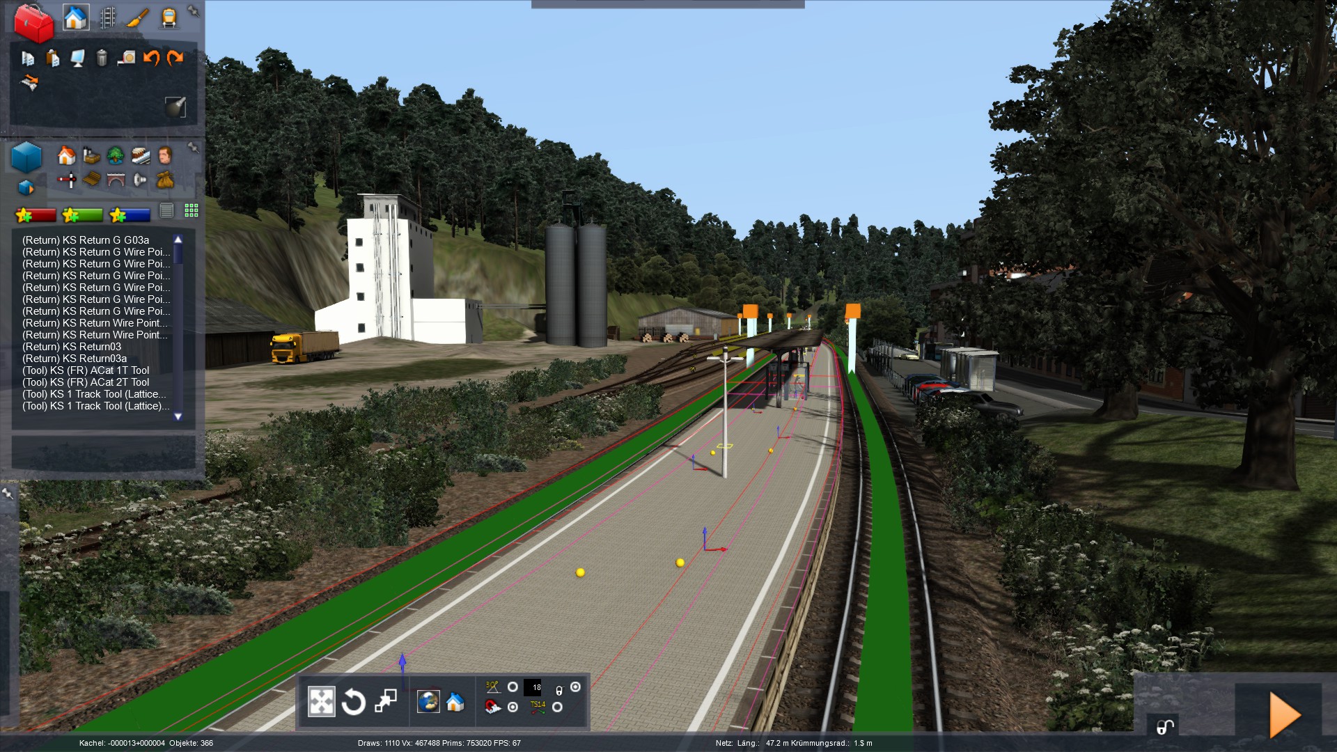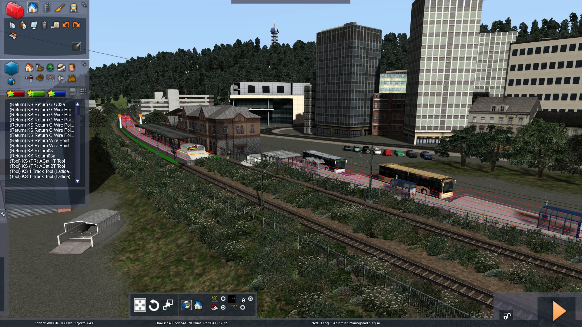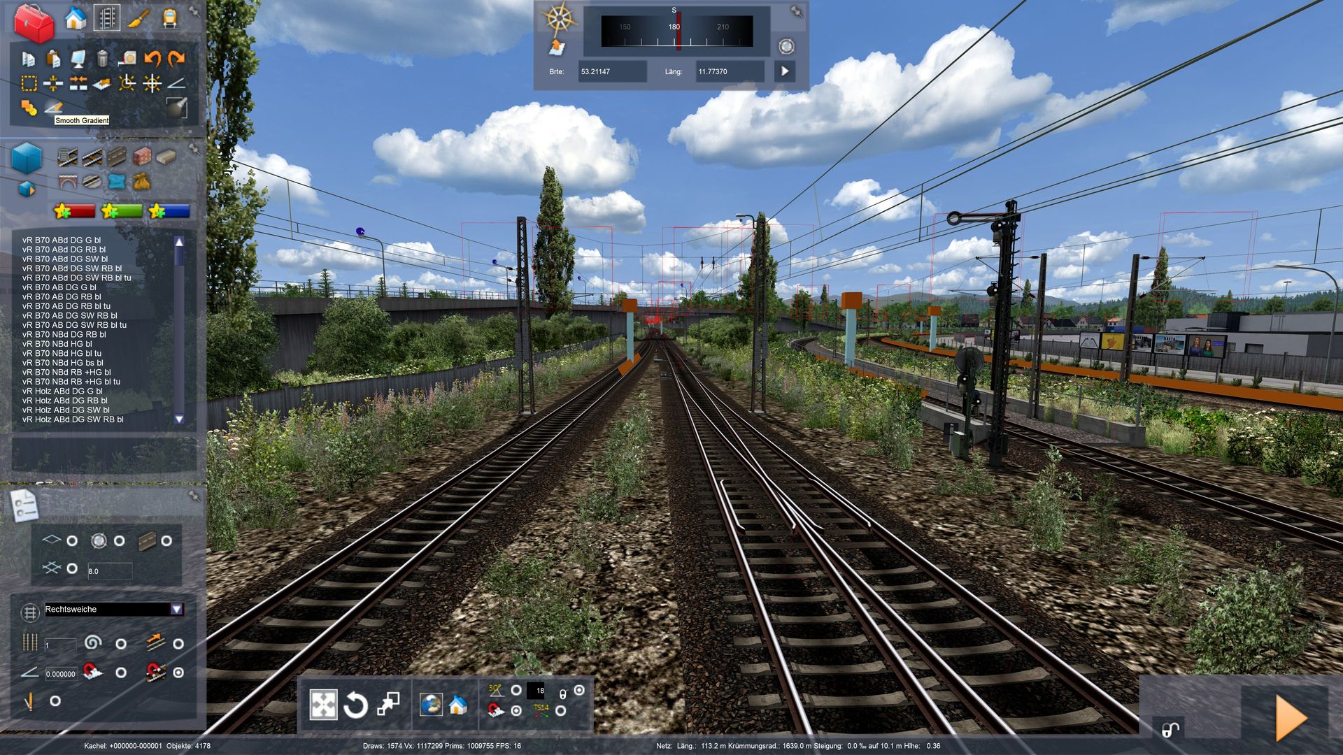 Das ganze ist meine Heimatstrecke, bisher habe ich ohne Google Maps Overlay gearbeitet, das habe ich nicht zum laufen gebracht, nur mit Hilfe auf dem Tablet nebenher. Da ich seit Jahren aber täglich auf der Strecke unterwegs bin, sollte das ,,nach Augenmaß" aber doch recht genau sein, 1:1 ist eh nicht mein Anspruch, aber als Ortskundiger sollte man schon wichtige Stellen eindeutig erkennen.