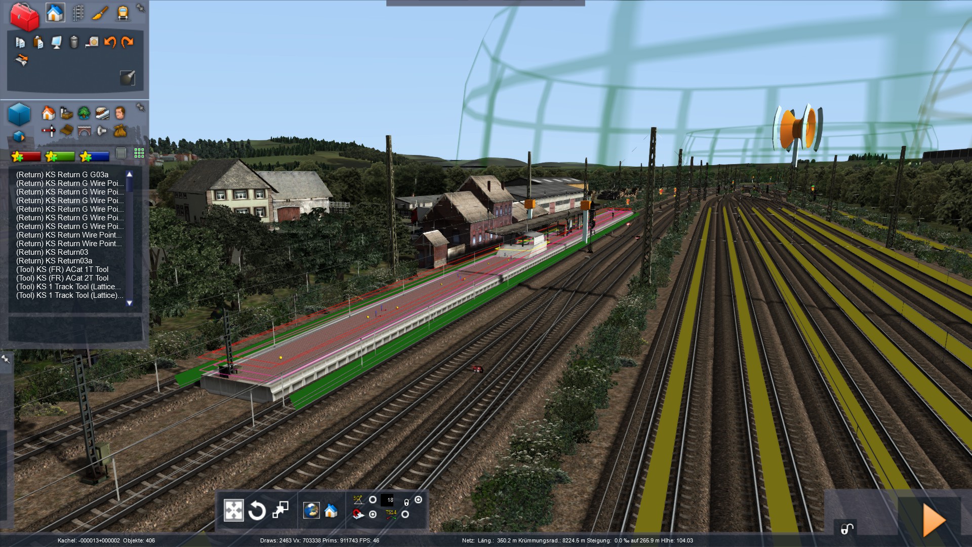 Hier ist die Karte soweit, die Gleise liegen bis auf das Weichenwerk in Witten und einigen Stellen in der Westausfahrt des Gbf Vorhalle schon.