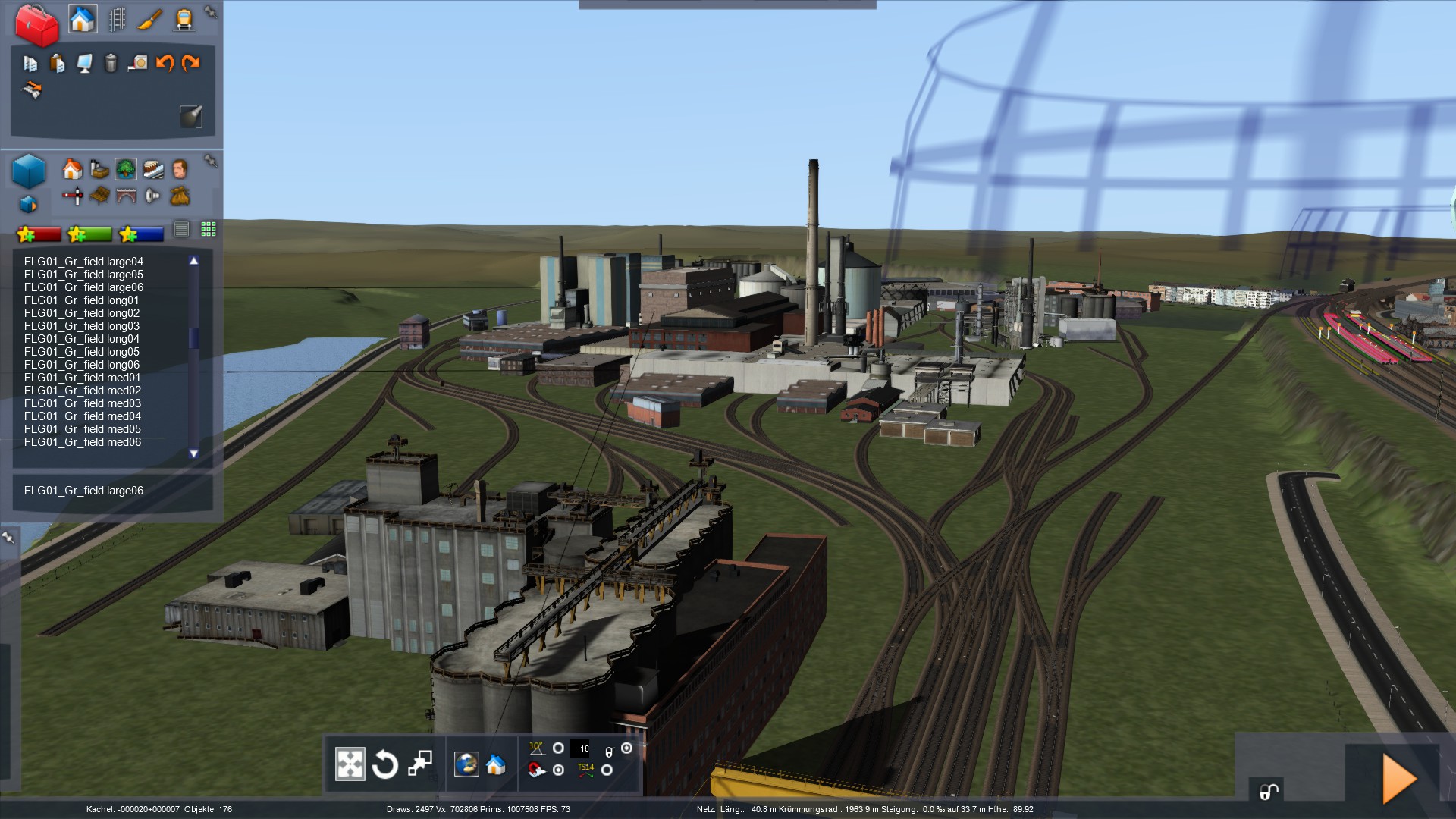 Für den Stadtkern wurde wie man sieht sehr oft die gleiche Ansammlung an Häusern benutzt, aus der Lokführerperspektive fällt das aber nicht auf und markante Gebäude sind natürlich einzeln umgesetzt.