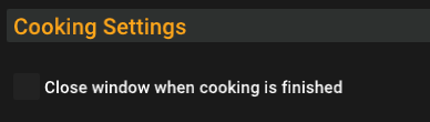 EDIT: Cooking 'Close window when cooking is completed' setting done.