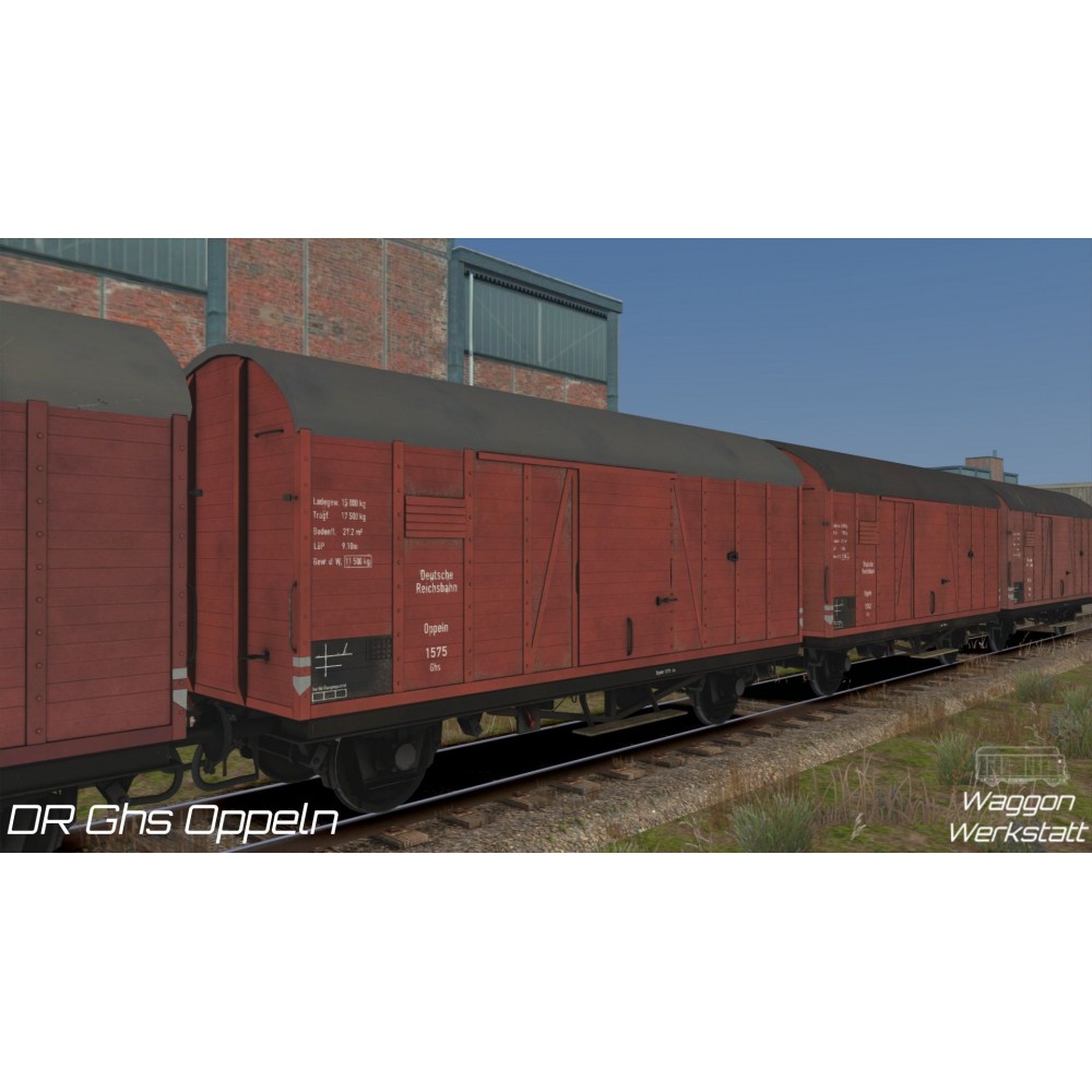 Güterwagen DR Ghs Oppeln Gedeckter zweiachsiger Güterwagen für den schnellen Stückguttransport, erstmalig 1937 im Einsatz bei der Deutschen Reichsbahn. Die Wagen konnten aufgrund des Achsstandes von 6000 mm für 90 km/h zugelassen werden. Es entstanden rund 30.000 Wagen in verschiedenen Ausführungen, mit oder ohne Handbremse teilweise sogar mit Dampfheizung. In diesem Add-On ist die Ausführung des Güterwagens ohne Bremserhaus enthalten. Alle Wagenmodelle im Train Simulator sind mit scriptgesteuerten Zugschlusstafeln, dynamischen Nummern versehen und benutzten das vR Feature RandomSkin. [WW] DR Ghs Oppeln A [WW] DR Ghs Oppeln B [WW] DR Ghs Oppeln C [WW] DR Ghs Oppeln D [WW] DR Ghs Oppeln Das Paket enthält Zugverbände für das schnelle Spiel mit den Fahrzeugen BR 294 (European Loco & Asset Pack) & BR 323 Köf (virtualRailroads) |