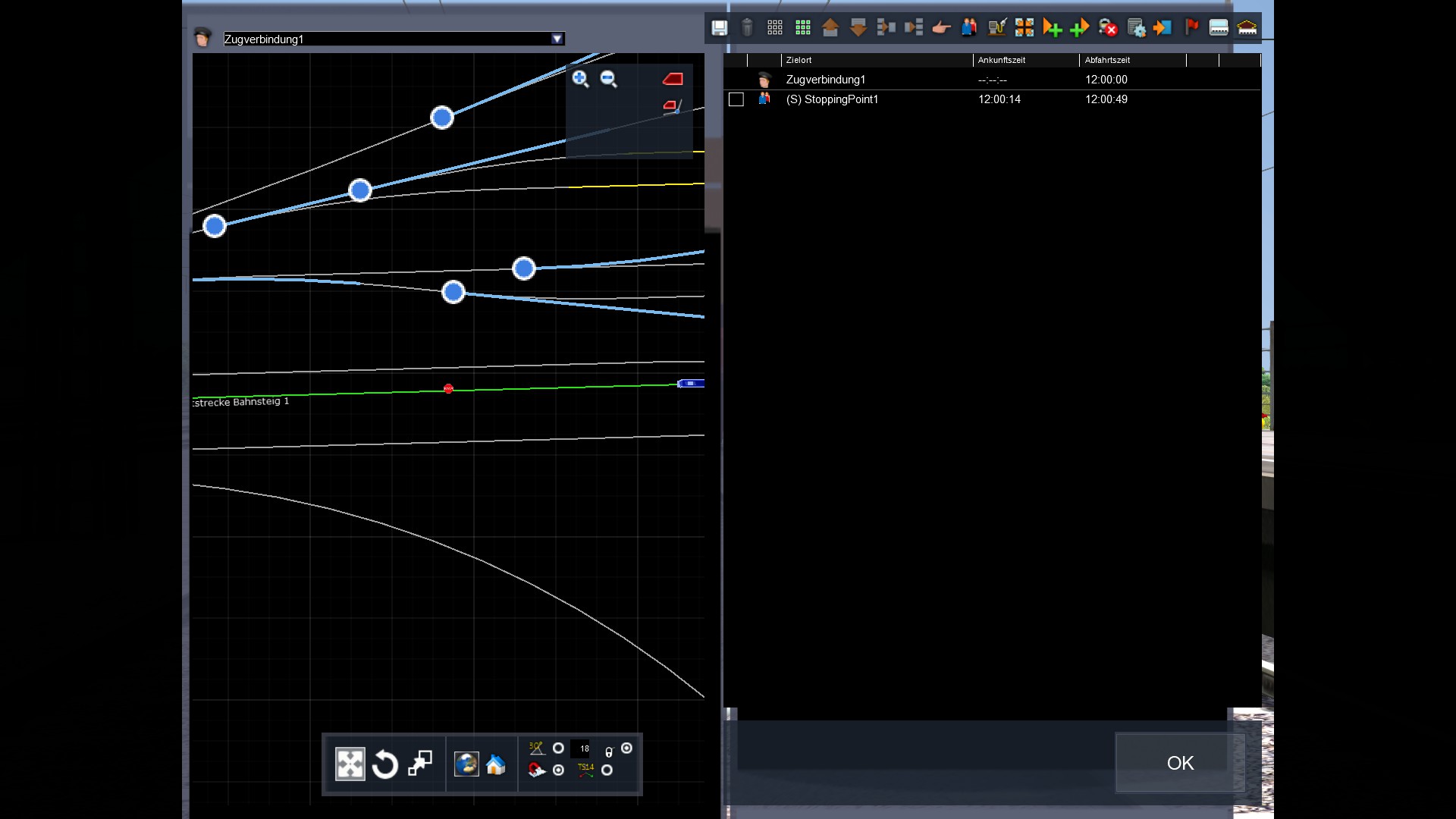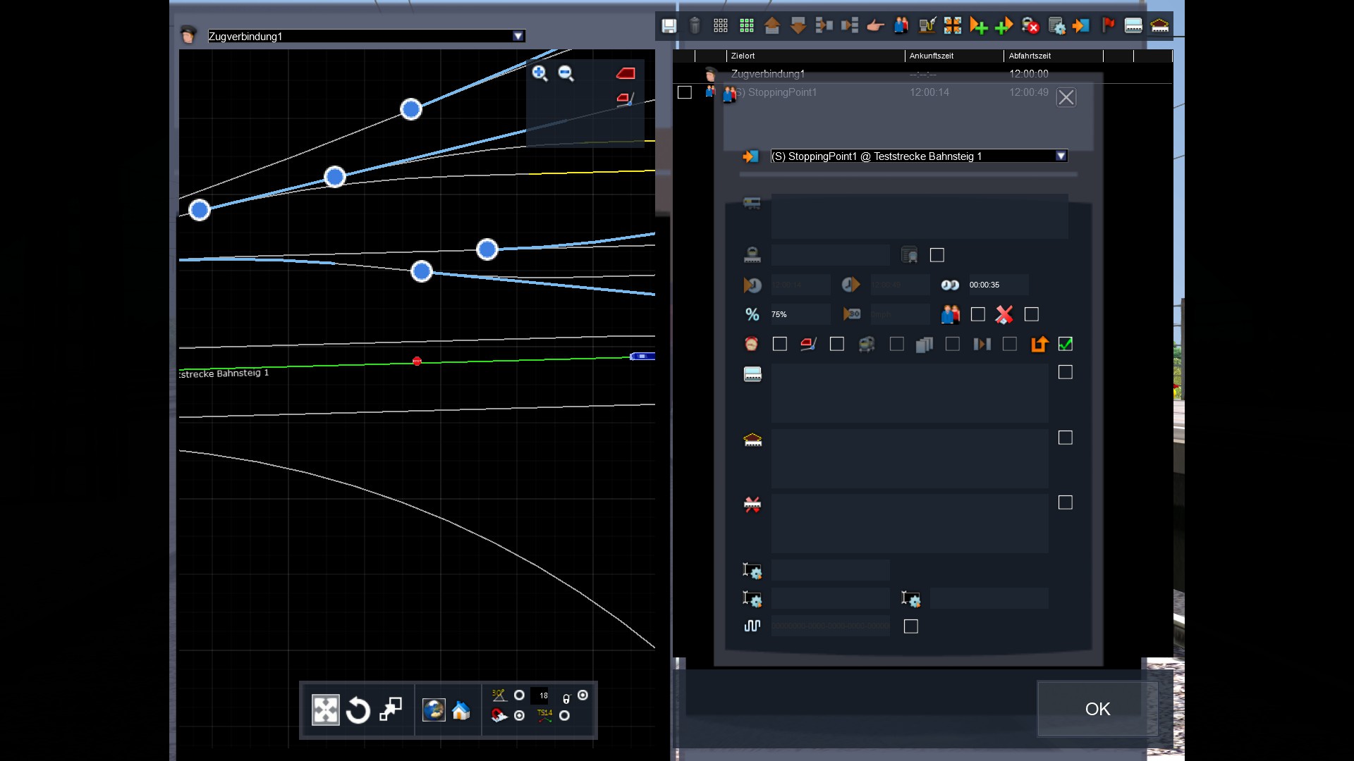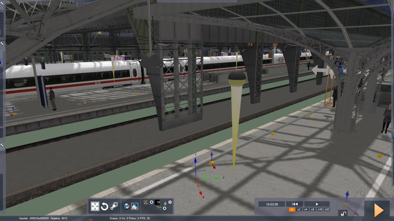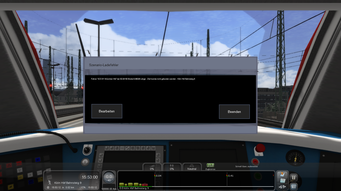 1. Ich habe einen ICE als nicht Spielerzug eingebaut. Dieser soll sobald das Szenario startet direkt am Bahnsteig neben dem Spielerzug stehen. (Weil der echte Fahrplan das so hergibt) Nun startet das Szenario um 15:30 Uhr. Dieser ICE soll daher auch dann schon dort stehen. Aktuell ist aber das Problem, dass man am Anfang der Simulation noch direkt neben einem hört, wie der ICE die letzten paar Meter fährt (man sieht ihn nicht), dann stehen bleibt und die Türen öffnet. (Im originalen Fahrplan/Zeitablauf steht der ICE aber schon seit ca. 8 Minuten am Bahnsteig) Kann ich das irgendwie hinbekommen, dass der sich nicht mehr bewegt sondern schon dort steht?