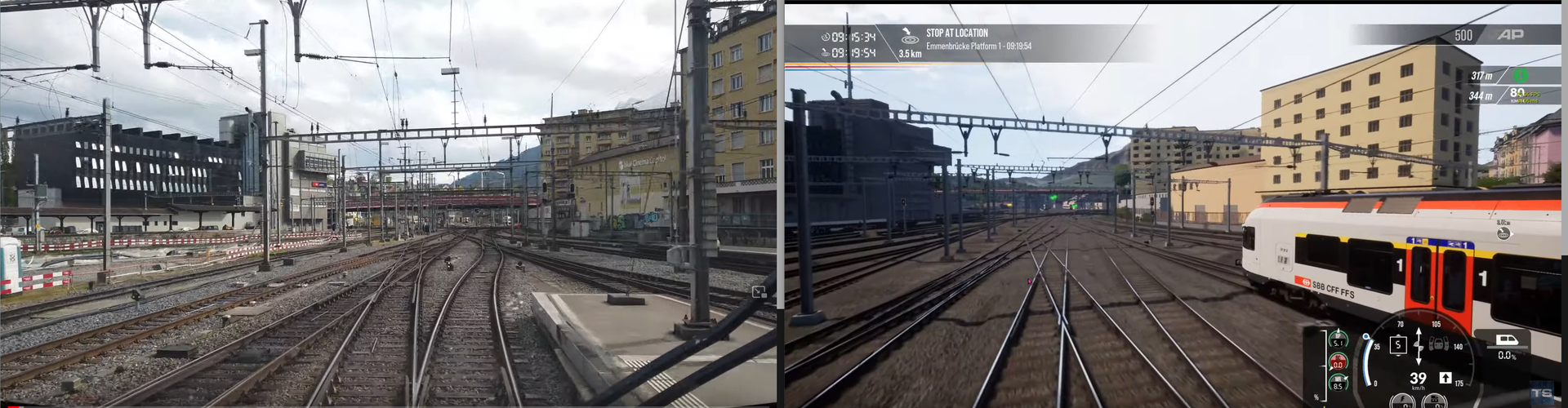 Hier mal ein kleiner Vergleich von den ersten paar Gleiskilometern ab Luzern (Referenzvideo).