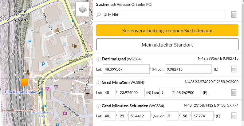 die Koordinaten gleich in bauchbaren Dezimal-Koordinaten.