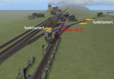 - ich kann einen Schienenstrang meistens mit Signalen vom Typ (1T) absichern; der kreuzende Schienenstrang scheint dann aber immer fehlerhaft zu sein, da die Signale an diesem Strang dann immer nur "Rot" zeigen.