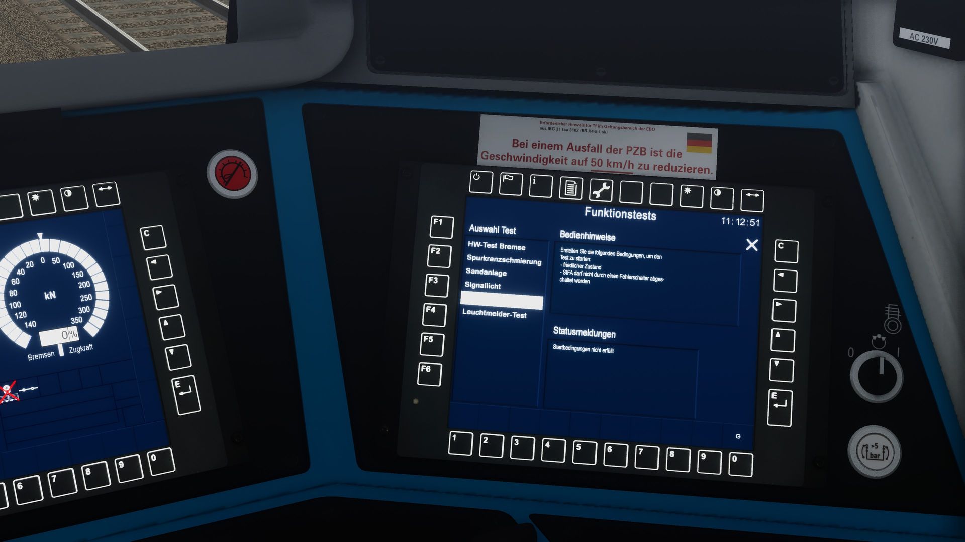 Danke für eure Hinweise, T04STY und Giruno93. Ich konnte das Add-on frisch installieren (Installer auf Sicherung gefunden und Freischaltcode im Mail der Kaufbestätigung). Trotz richtigem Aufrüstvorgang geht die SIFA nicht. Ich hab dann PZB wieder eingeschaltet, dann ging der SIFA-Test, aber die SIFA hat nicht angesprochen. Dann habe ich angehalten und den PZB-Test gemacht, auch danach keine SIFA.