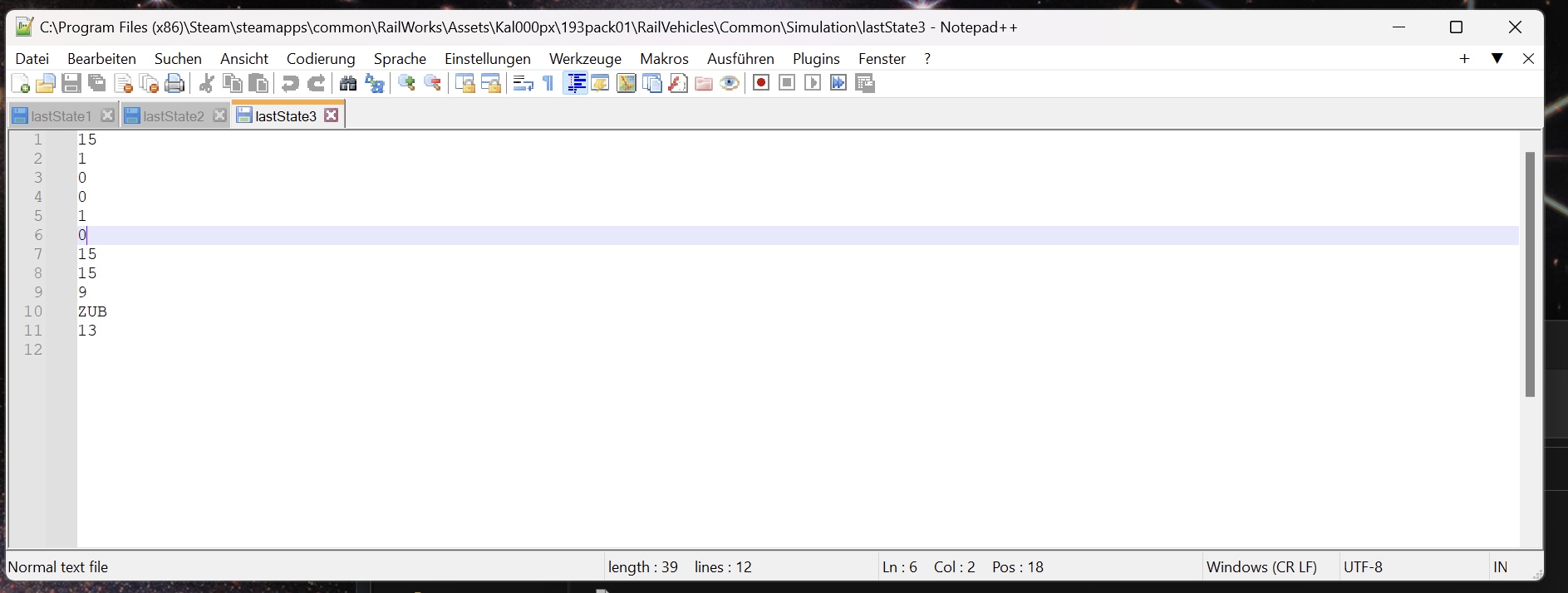 Edit: Sorry, ich meinte den Tipp oben von G.A. bzgl. Reihenfolge. Laststate-Dateien hatte ich zuvor alle auf den „Default“-Zustand gesetzt. Leider kein Erfolg. Riesen Freude macht die Lok aber auf jeden Fall!
