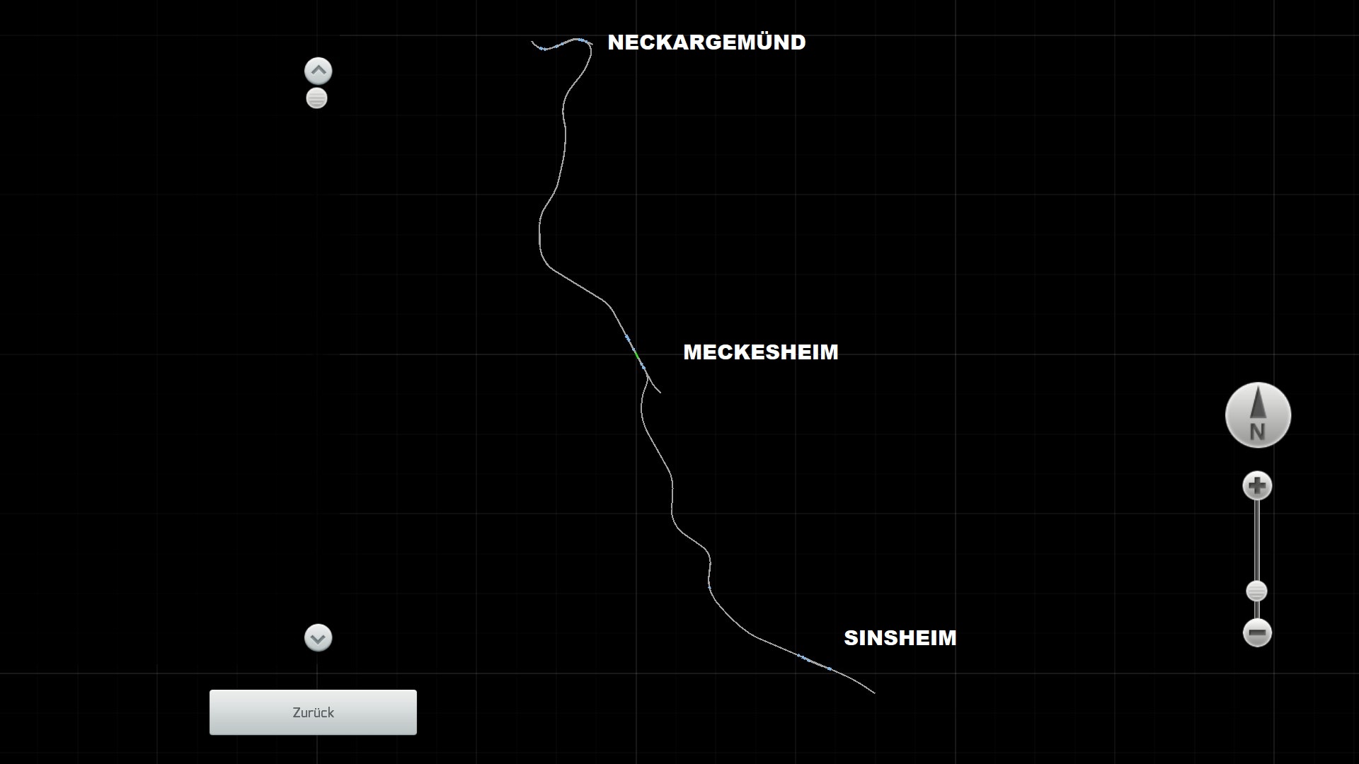 - Elektrifizierte Hauptbahn im Norden Baden-Württembergs, befahren von der S-Bahn Rhein-Neckar (Linie S5) mit Fahrzeugen der Baureihe 463, ehemals BR 425. Südlich gesehen verläuft die Strecke zweigleisig, ehe sich in Meckesheim der Streckenabschnitt nach Aglasterhausen (S51) von der nach Sinsheim trennt. Kurvenüberhöhungen sind meinerseits nach Möglichkeit verbaut, auch wurde DEM benutzt.