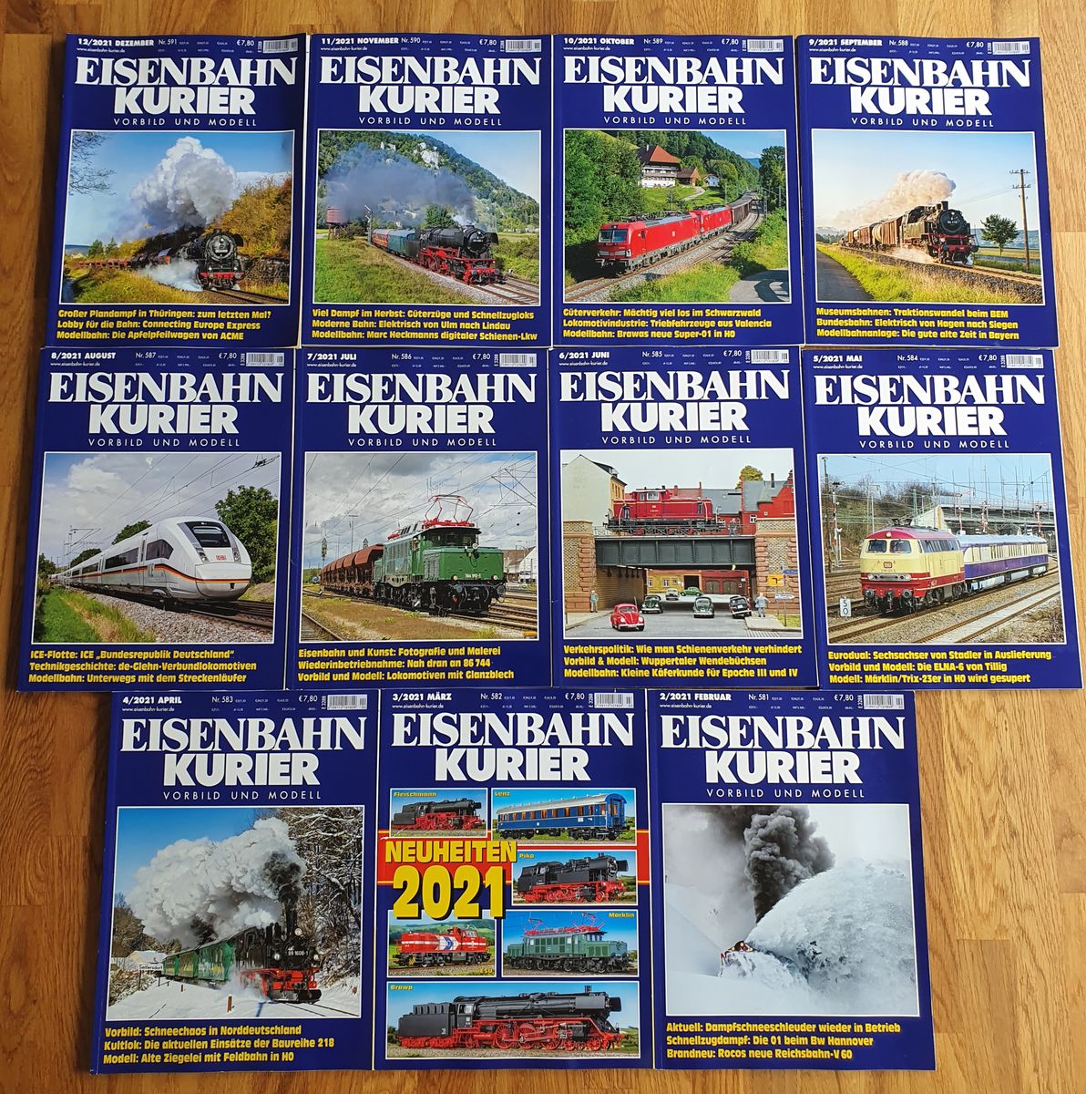 Ich biete hier 11 Eisenbahn-Kurier Zeitschriften aus dem Zeitraum Februar bis Dezember 2021 an. Die Hefte sind wie neu und haben keine Beschädigungen. Der Preis ist verhandelbar.