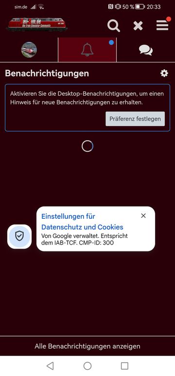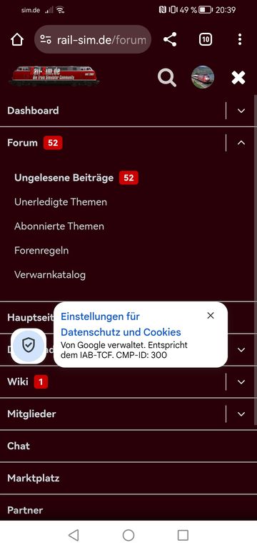 Das mit der Meldung wegen der Datenschutzbestimmungen, kenne ich nur, wenn man nicht Eingeloggt ist. Das hatte ich mal vor einigen mittlerweile Jahren. Das war aber ein Problem mit meinem Handy, nicht von der Railsim- Seite.