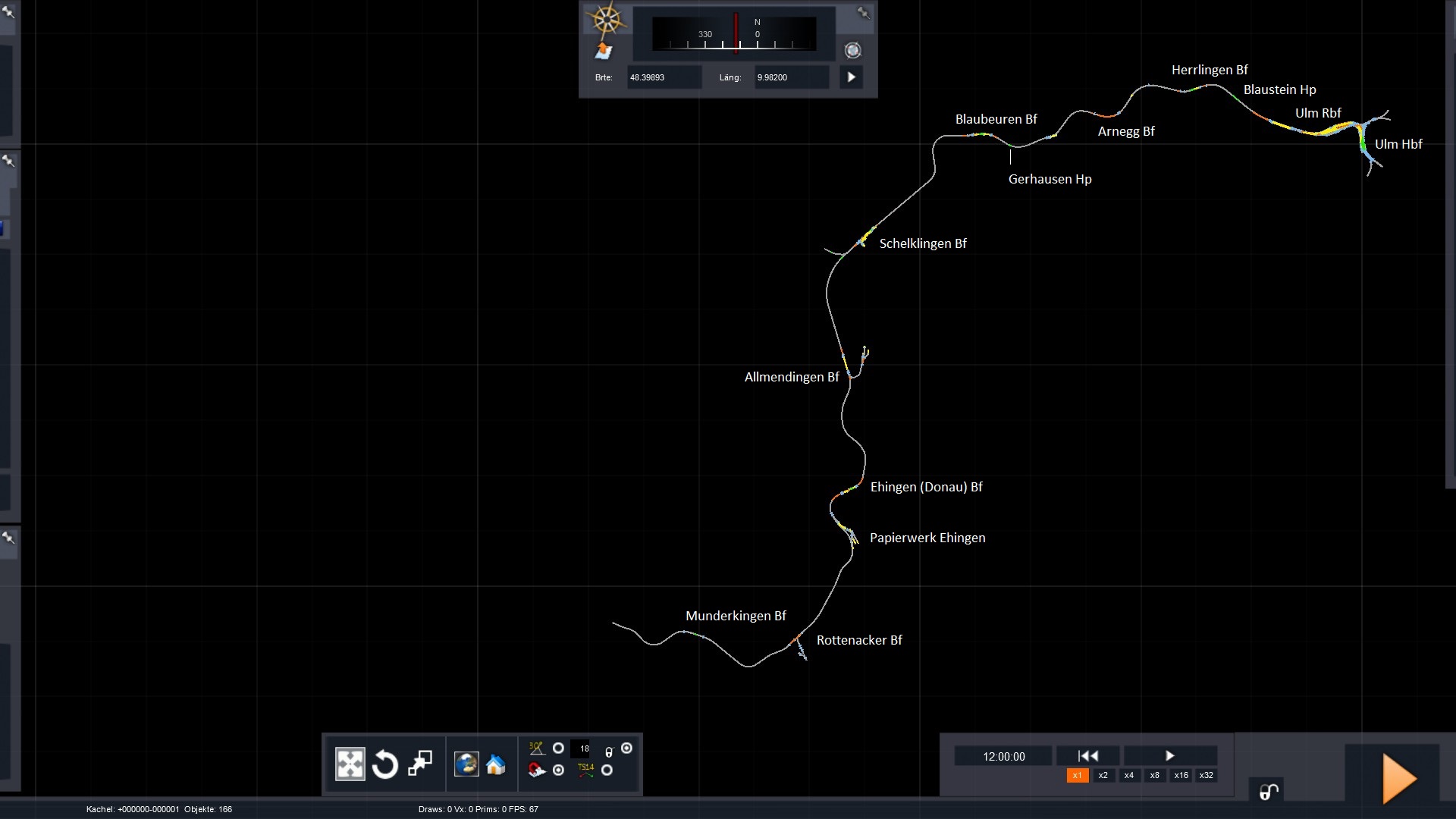Ulm Hbf wird erst ernsthaft angegangen, wenn der reale Umbau abgeschlossen ist und Informationen über Signale und Geschwindigkeiten verfügbar sind. - Streckenlänge (in km):