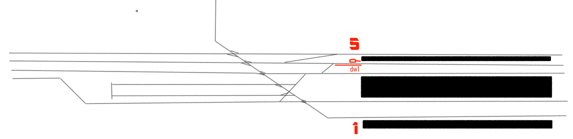 Die Situation ist mir tatsächlich auch zum ersten Mal hier untergekommen. Das Fallbeispiel welches mich gerade beschäftigt liegt nicht nur in meiner Hand, weshalb ich ja gerade auch damit etwas am Grübeln und Fragen bin. Ich habe eine Bhf. mit drei abgehenden Strecken im Nordkopf von denen zwei parallelgeführte Doppelspuren sind und eine ausfädelnde örtlich eingleisige Hauptbahn. Die Hauptbahn quert das Gleisvorfeld diagonal komplett teils mit EKW und DKW, jedoch läuft mein d-HGL für diese Strecke dummerweise (vmtl. aus Platz-/historischen Gründen, wer weiß das bei Übungsfällen schon so genau) durch die DKW-Abzweigbögen. So bin ich auf das Thema gestoßen. Die Maße waren zwar kein Teil des Lösungsproblems, aus Gründlichkeit hatte mich jedoch privat noch interessiert wie diese DKW eigentlich korrekt in der Fahrkantendarstellung im Detail aussieht. In der Weichentabelle (die für Fpl-Pl. zugegebenermaßen sicher nicht sonderlich ausführlich ist) war nur die Angabe des zwei verschiedenen Radien für DKW300 und EKW300 ohne Abmessungen angerissen. Die Fortbilder hatten (verständlicherweise) für solche Detailfragen wenig Zeit und Begeisterung über