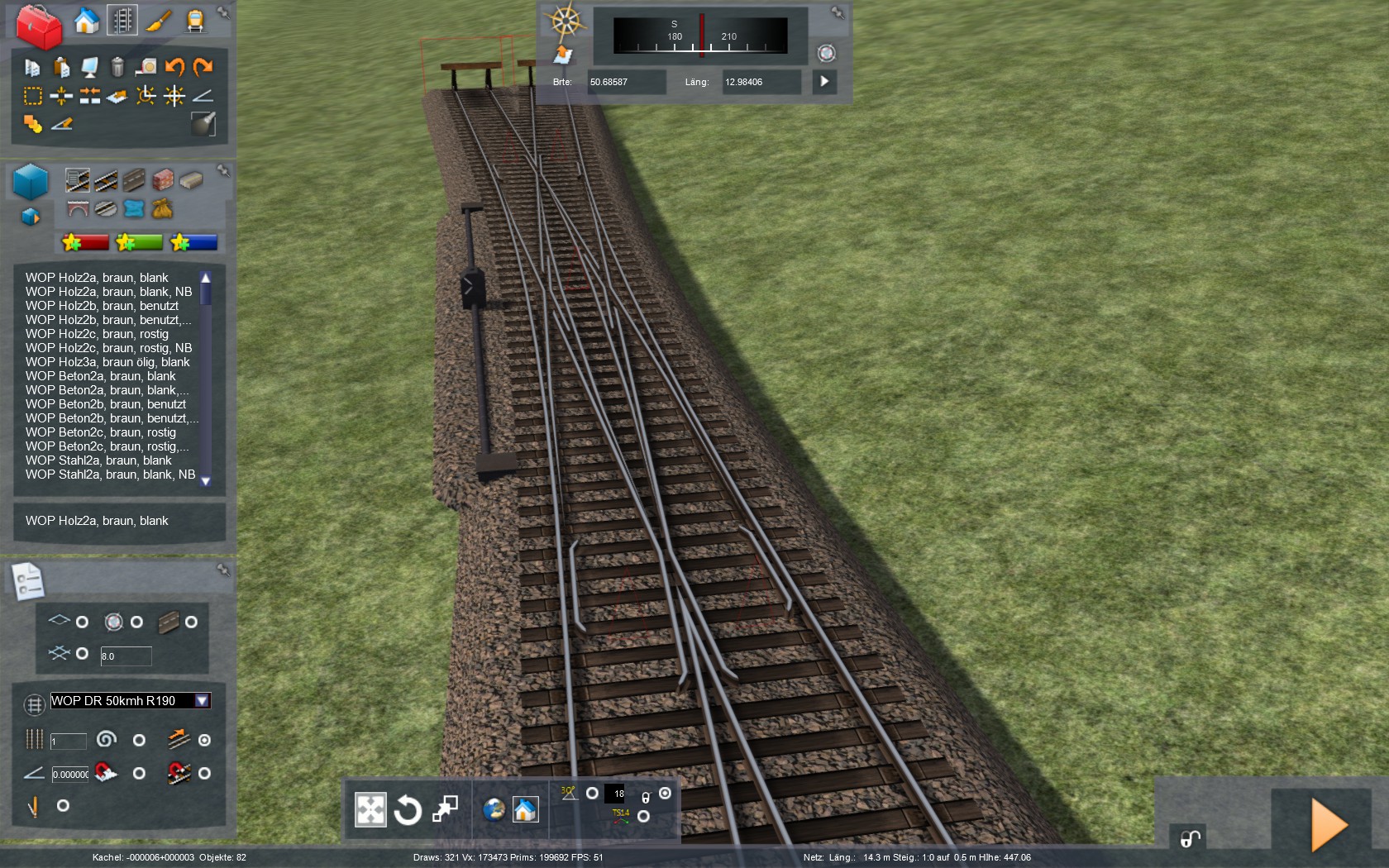 Und dafür wird immer der Mindestradius des aktuellen Gleistyps (Hauptstrecke, Passagier, Güter, Abstellgleis) der Trackrule hergenommen, kommt aber in der Regel am Ende größer heraus, weshalb man dieses Radius kleiner wählen sollte, als er werden soll. Muss man bisschen probieren