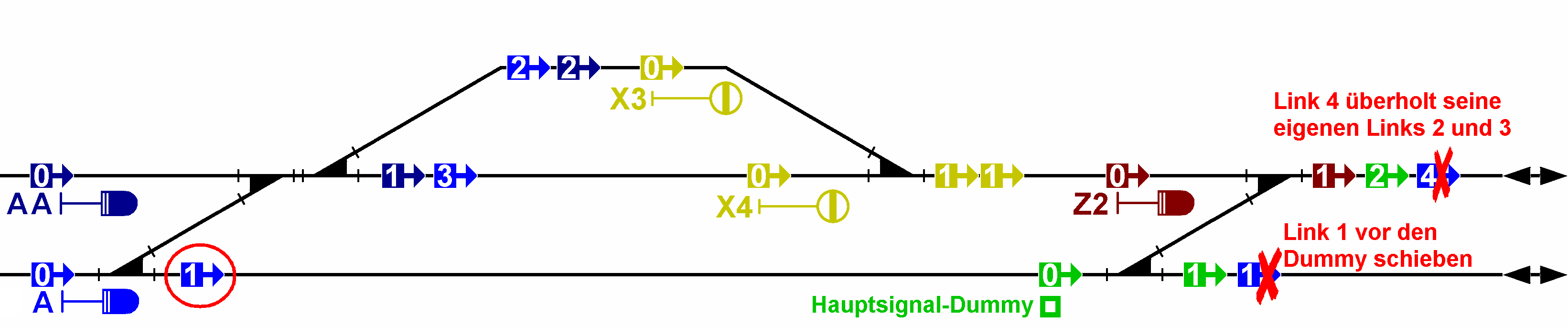 ... [...]... Hauptsignal-Dummy. ... [...]... besitzt keinen Mast und keinen Signalschirm. ... [...]... Dieses Signal befindet sich dauernd im HpX-Modus und wird nur bei kritischen Verlinkungen angewendet. Die Streckenbauer, die dieses Signal wirklich benötigen, werden es wissen.