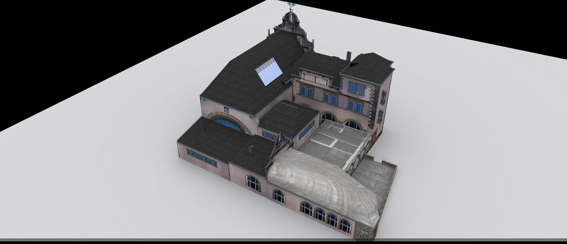 ice Zwischen Bahnsteig und Eingang auf dem Platz besteht ein deutlicher Höhenunterschied, im Bahnhofsgebäude gehen treppen Runter zu den Gleisen. Die Bahnsteige sind bei uns ca. 236 über nn, die Straße und der Platz dadrüber auf 241über nn. Das ewige Thema Höhenunterschiede auf unserer Strecke. Rechts am Gebäude ist noch ein Seitenflügel mit Dönerbude drinne.