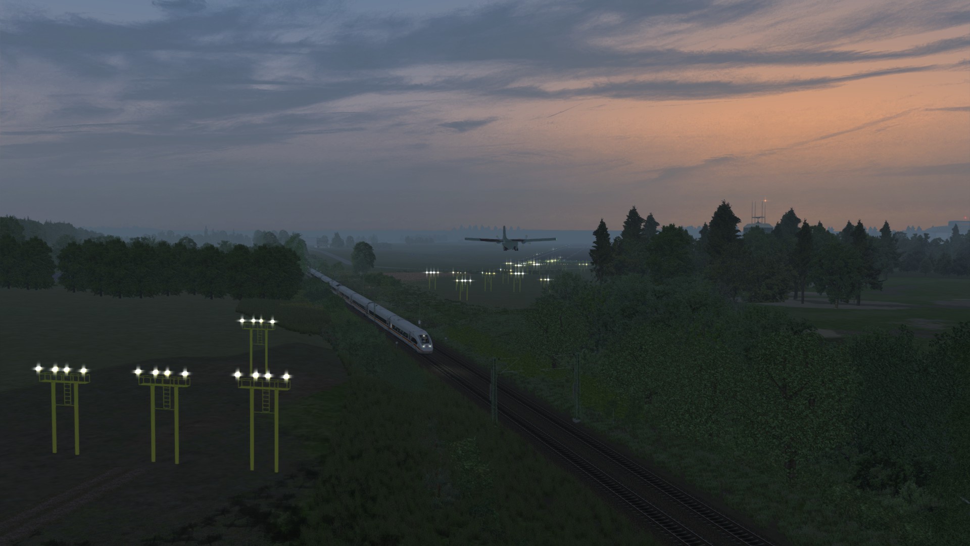 Hamburg-Hannover nachgeladen.... Heeresflugplatz Celle im Sonnuntergang mit Transall im Landeanflug und ICE4 Deutschland richtung Hamburg.