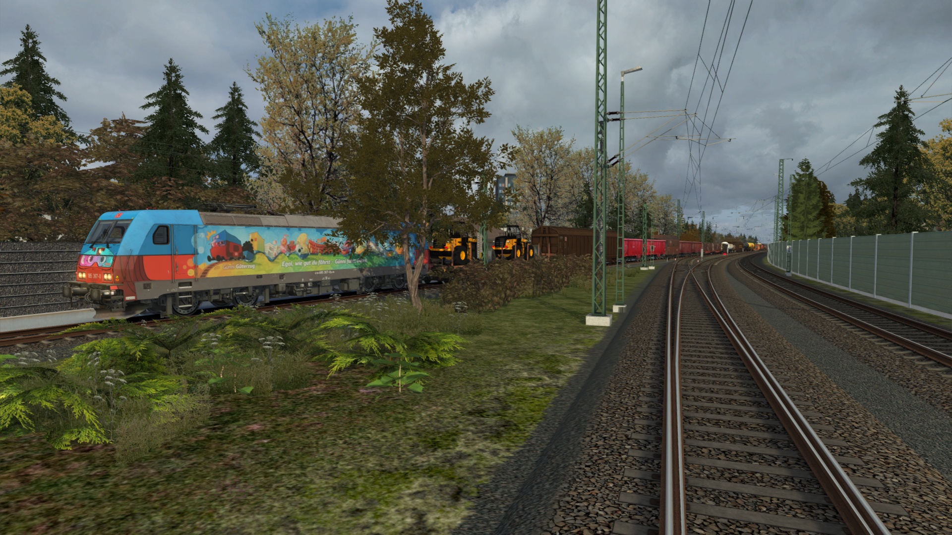 Dieser Güterzug ist statische KI und soll da nur stehen. Aber es kommt eine Regionalbahn entgegen, die abgewartet werden muss