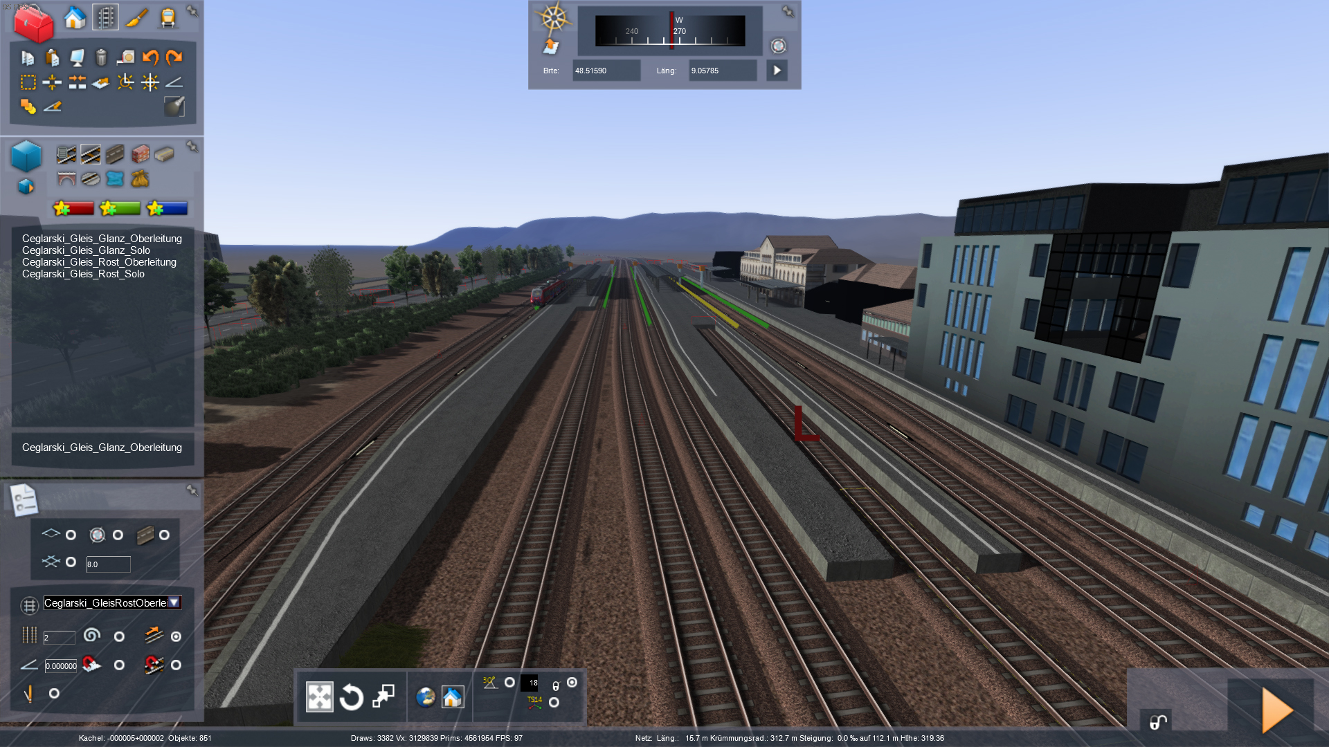 Gleisunebenheiten habe ich in der Regel gar nicht. Es gibt manchmal im Bergland mit vielen Kurven das Problem im Übergang zum Bahnhof mit auseinandergezogenen Gleisen für einen Bahnsteig tatsächlich das Problem, die zwei Gleisstränke miteinander zu verbinden . Das ist das Einzige, was etwas "tricky" ist.
