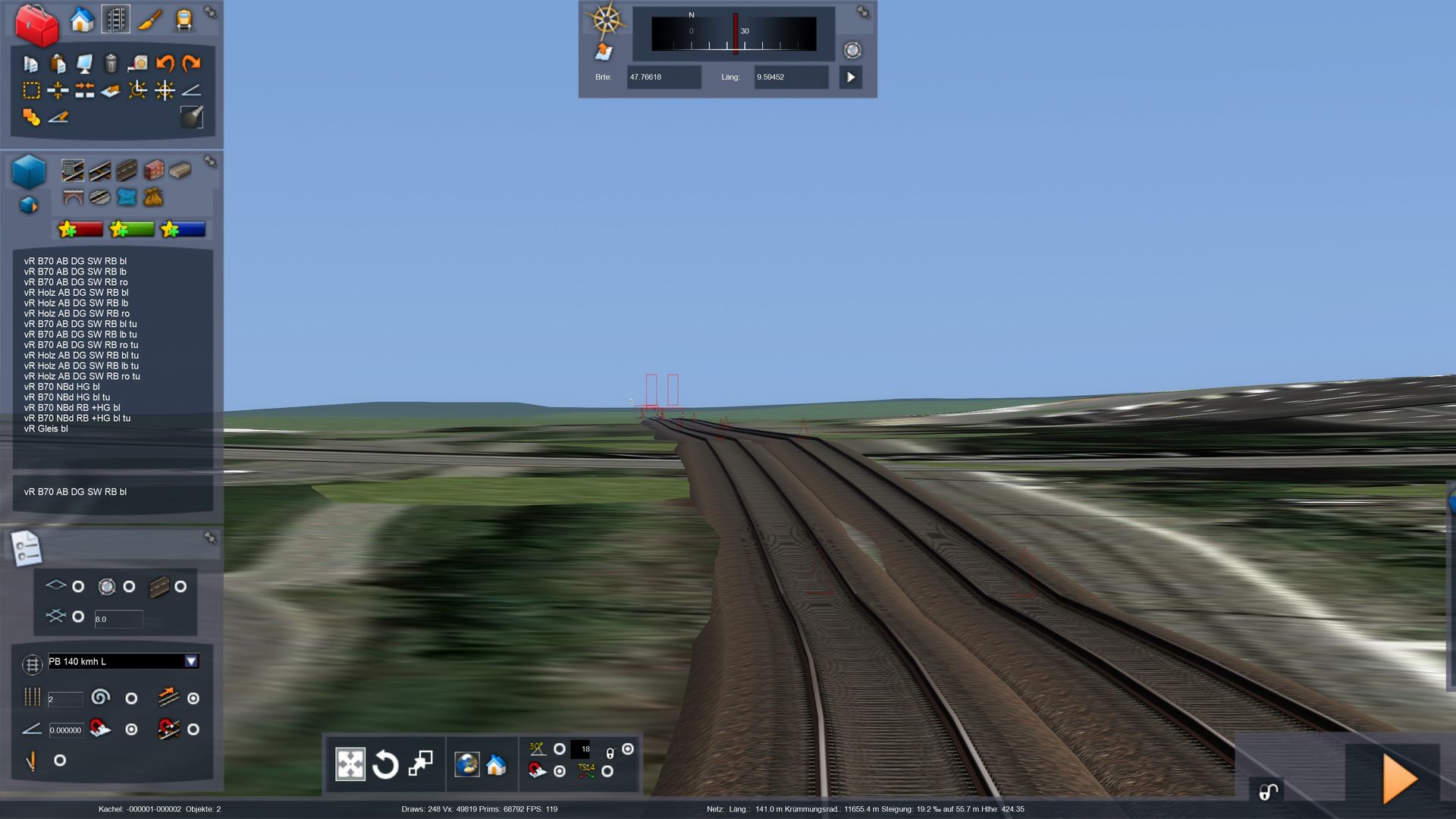 Ich versuche gerade ein paar Kilometer einer realen Strecke nachzubauen. Google-Maps Overlay funktioniert wie es soll. Die Höhendaten habe ich entsprechend der Region importiert.