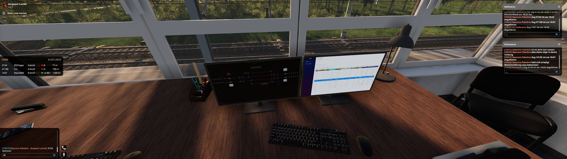 Ein sehr schöner Moment war, als ich als FDL Lazy Lc vier Züge aus Dabrowa angeboten bekam, alle vier Streckengleise per Erlaubniswechsel gedreht hatte und nach durchfahrt der Personenzüge diese Parallelfahrt der zwei Güterzüge hatte...