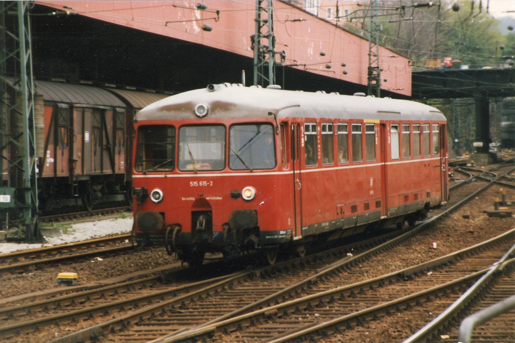 Hier der Akku-Triebwagen der Baureihe 515 (Samba Express) bei der Einfahrt in W-Elberfeld Gleis 5. Damals gab es das noch.