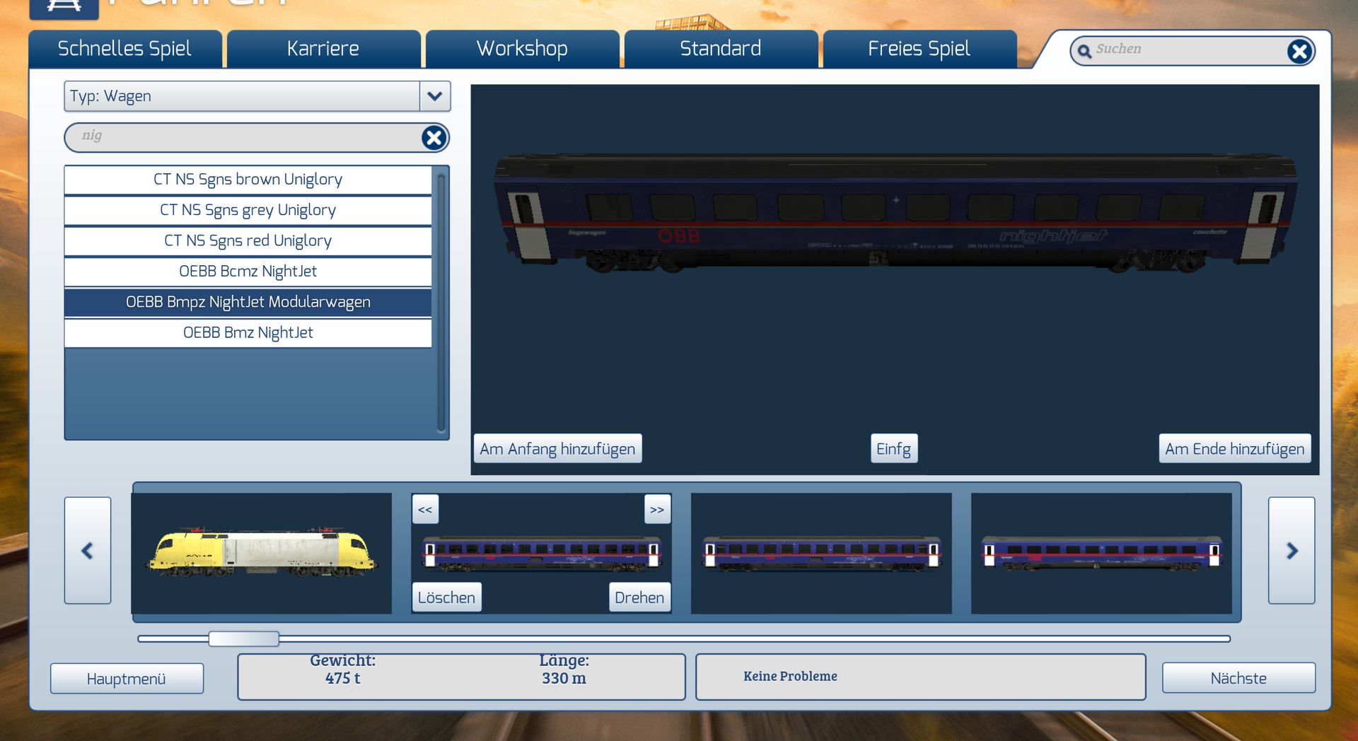 erfolgreich Installiert und kann ihn im Menü finden und auch auswählen. Wenn ich aber mehrere hintereinander auswähle, gibt es ein Kupplungsproblem das ist bei anderen wagen die an den NightJet waggon anschliessen würden genauso, genauso auch bei den Lokomotiven. Vielleicht kann mir wer weiter helfen.