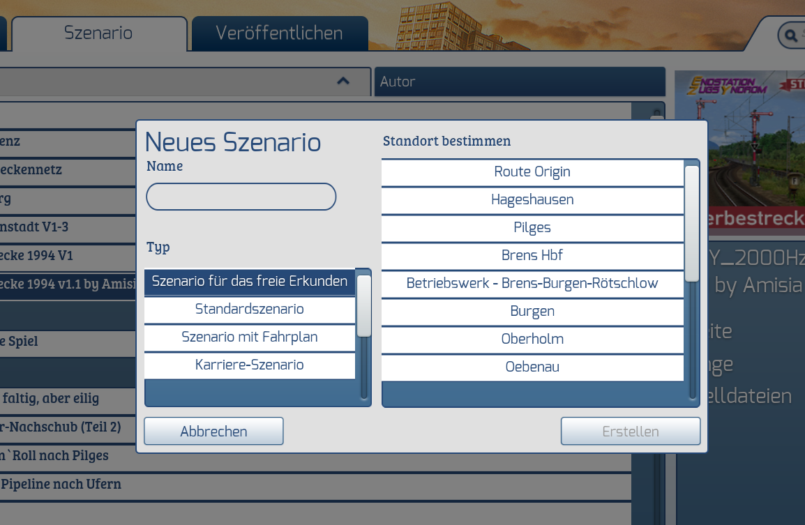 Heute wollte ich mir ein neues Szenario auf der Kerbestrecke 1.1 (by Amisia) erstellen. Zu meinem Erstaunen sehen ich aber keine Standorte in der Auswahl. Das einzige was angezeigt wird ist die Route Origin. Dasselbe bei der Kerbestrecke V1. Bei anderen Strecken gibt es das Problem nicht.