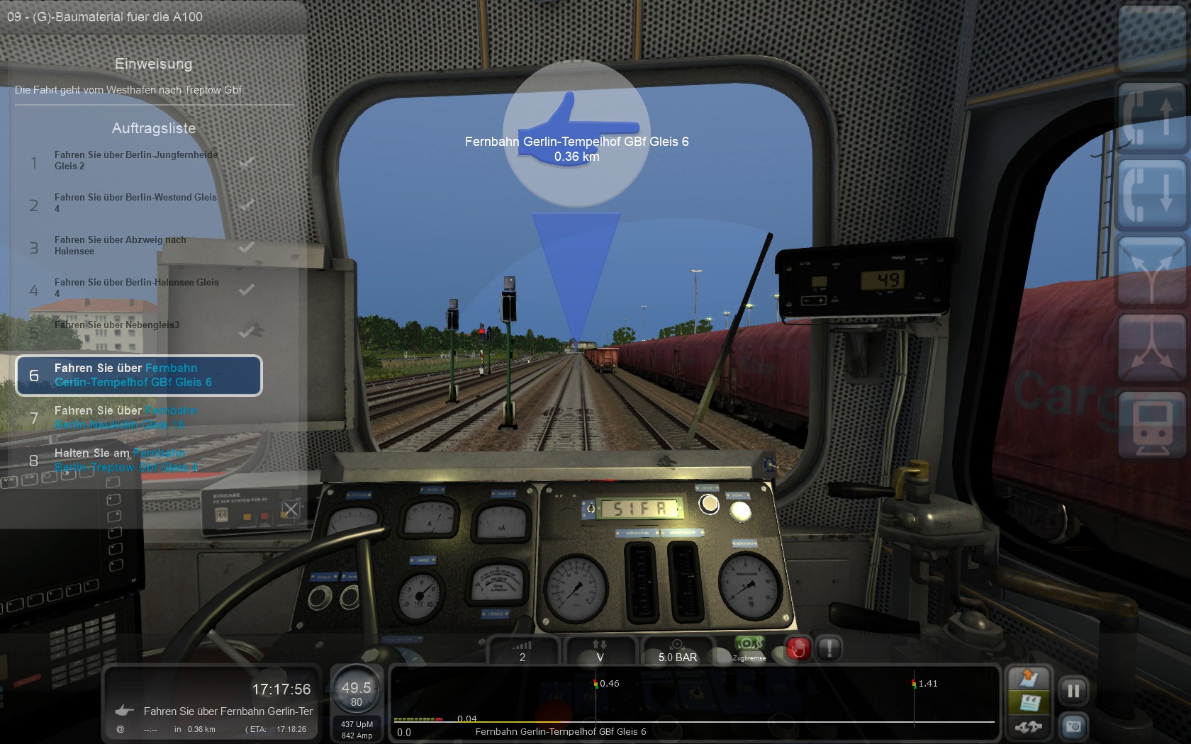 Dann übers Escape Menü in den Editor und ich meine kurz vor der Verzweigung auf die 2 Gleise der Abstellung steht das rote Tor.