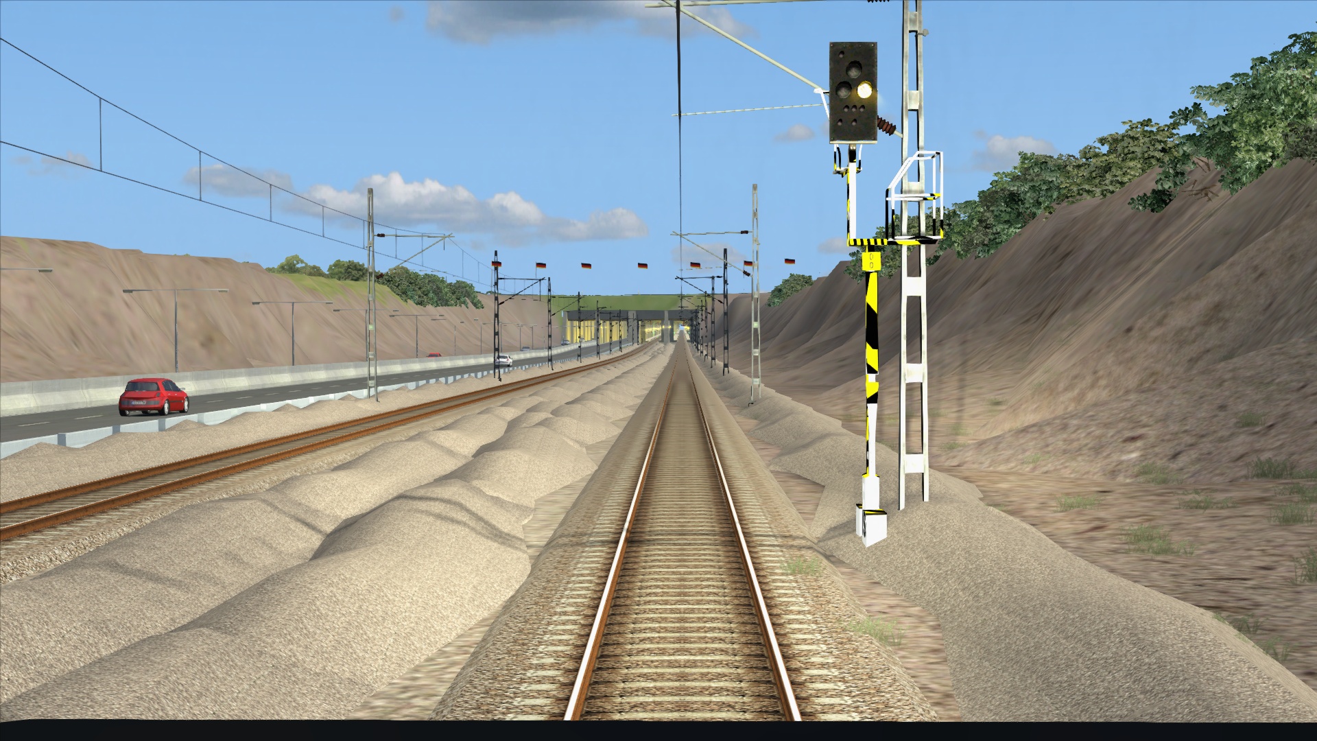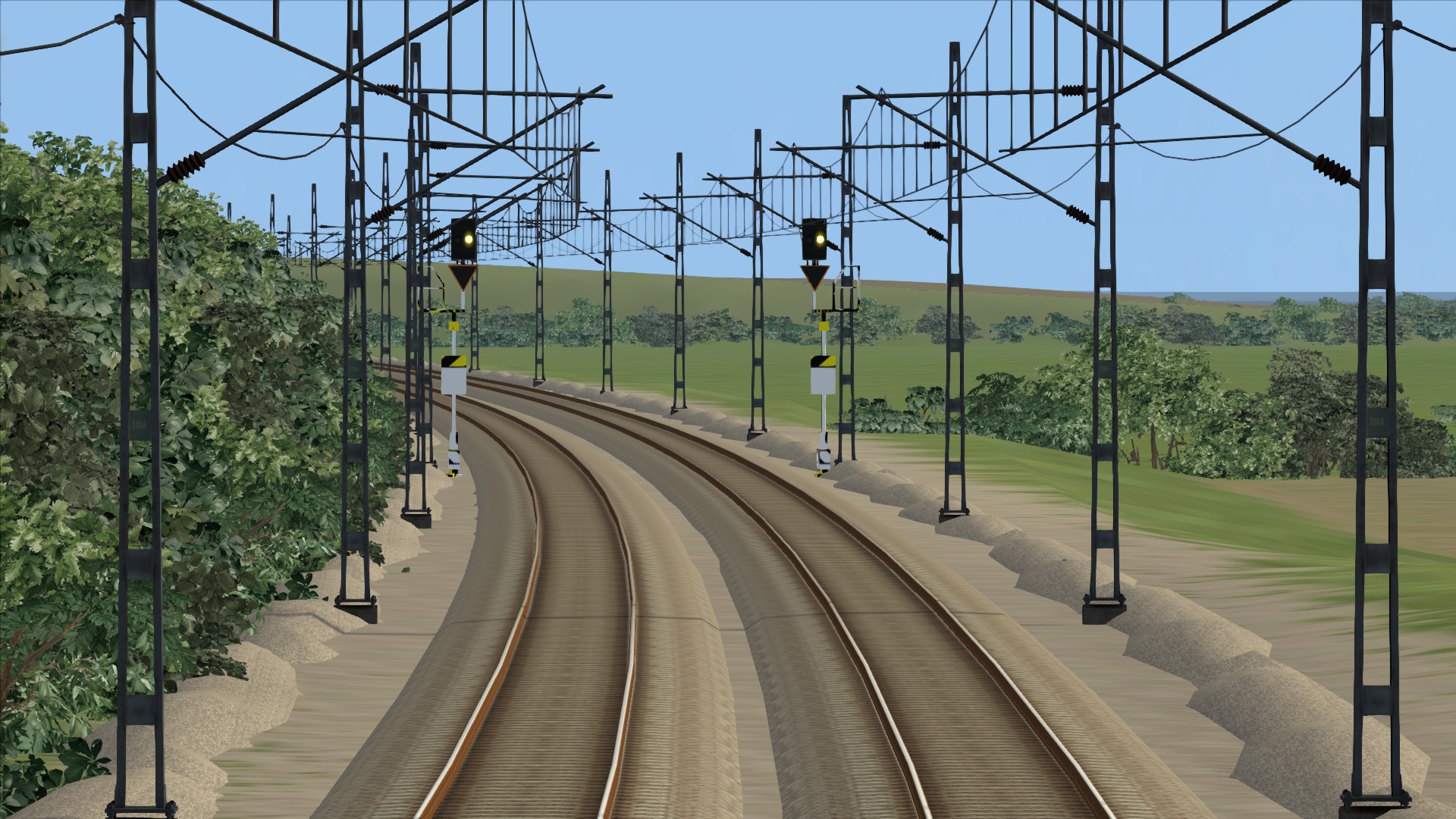 Woher kommen sie dann? Vor der Installation des Pakets „Deutsche Formsignale V9.8“ hatte ich auf diesem Streckenabschnitt keine deutschen Signale..