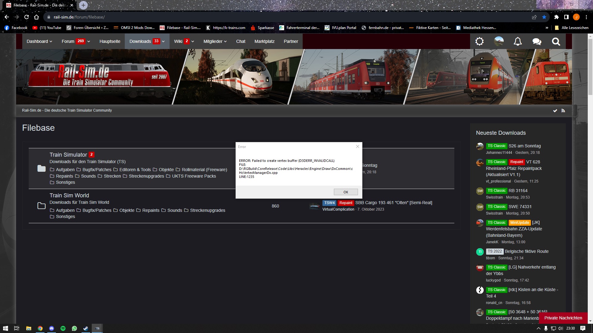 heute gab es ja ein Steam-Update. Seitdem ich das Update heruntergeladen und installiert habe, habe ich ständig (ich vermute nur wenn ich raustabbe) Abstürze mit der Fehlermeldung (siehe Anhang)