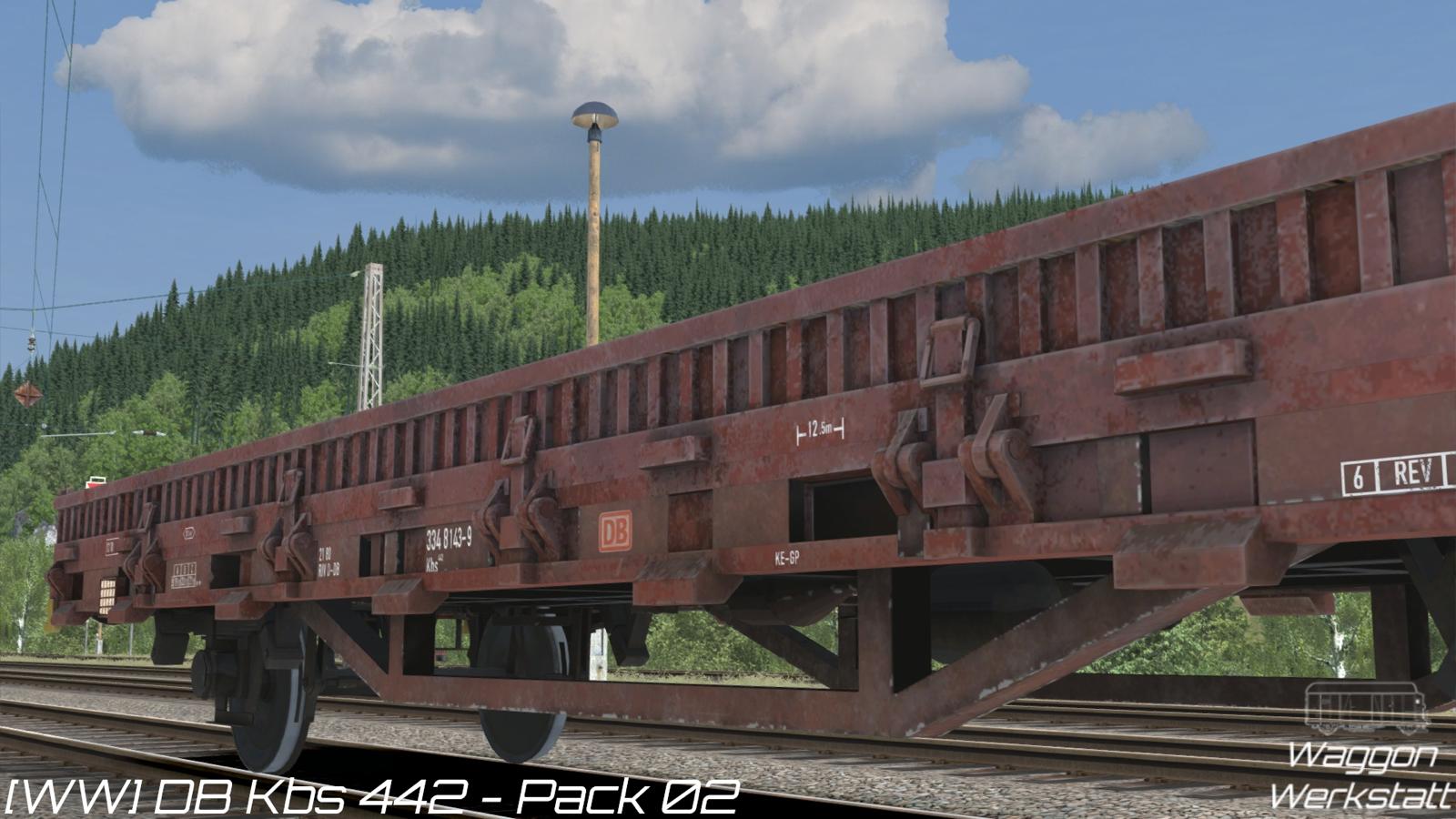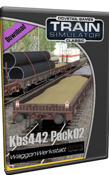 Das Fahrzeugpaket enthält den zweiachsigen Flachwagen der Gattung Kbs 442