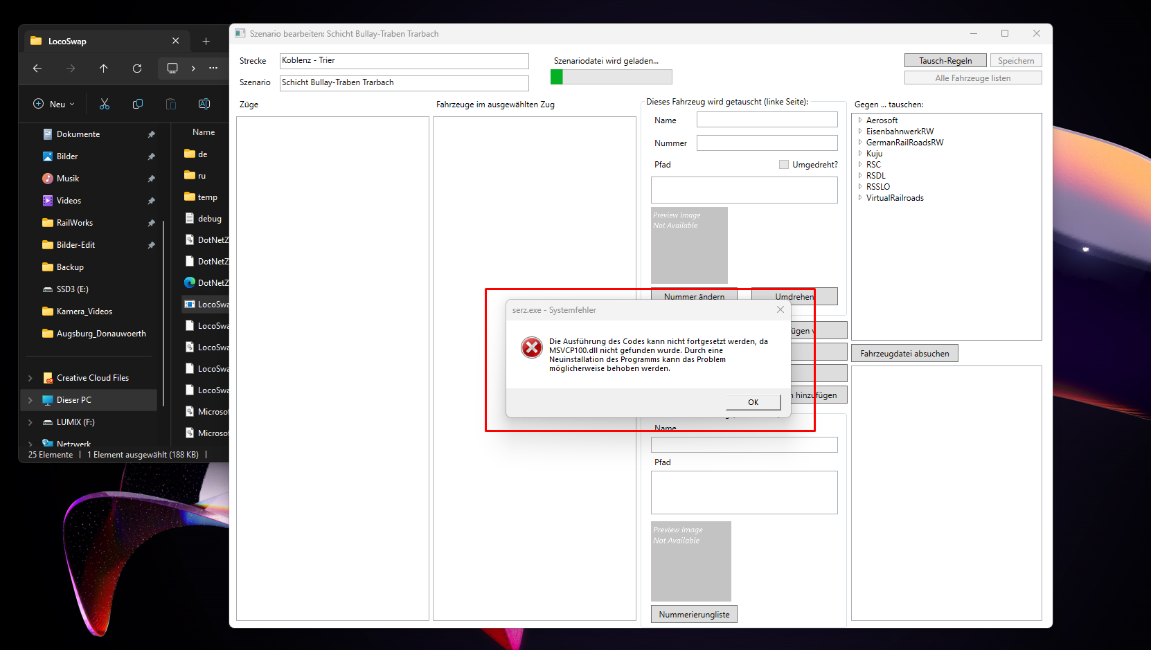 Als ich dann dabei war alles wieder runterzuladen und ich bei LocoSwap angelangt war, kam jedes mal folgende Meldung wenn ich etwas an einem Szenario ändern möchte.
