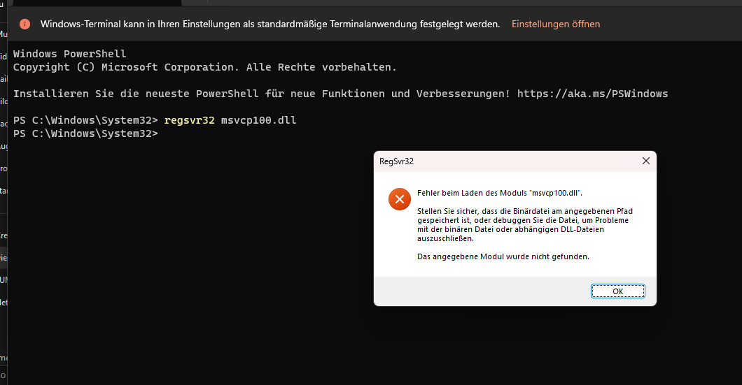 Ich habe bereits im Internet geschaut, laut Chip und anderen Websites fehlt mir "Microsoft Visual C++ 2010". Dies stimmt aber nicht denn auch nach der Installation davon hat es nicht geklappt, ebenfalls habe ich hier auf Rail-sim geschaut und auch ein Thema gefunden wo ein Link zu der MSVCP100.dll ist, diese soll man dann laut der Website in die Registry einfügen mit einem Befehl, dieser Befehl erweckt nur eine weitere Fehlermeldung.