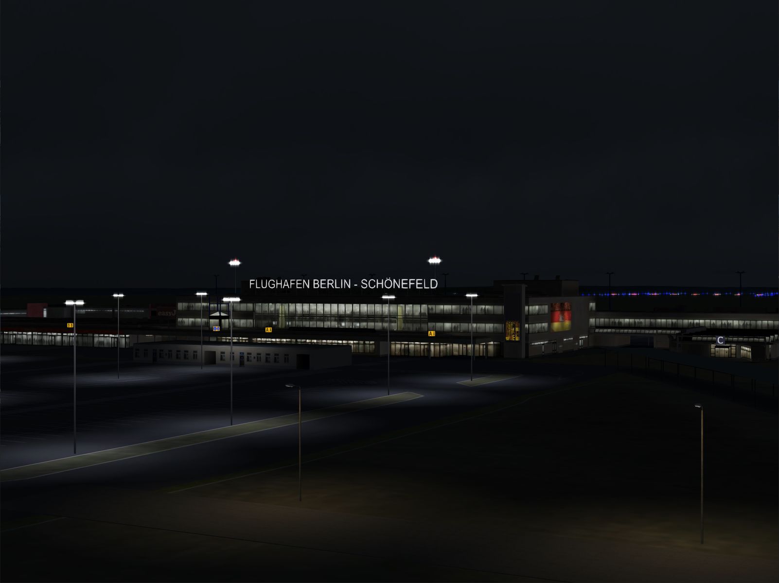 nu is Schönefeld auch fertig. Wie Tempelhof ein Relikt alter Fliegerherrlichkeit, liegt das Terminal 5 (5 wie die schlechte Schulnote, 1 und 2 hat der BER bekommen) brach und wird abgerissen werden. Dank eines Künstlers aus dem Baltikum (via http://www.cgtrader.com) haben wir hier ein kleines Denkmal an den "alten" Flughafen Schönefeld. Ich hab den alten Flughafen EDDB 1998 für den FS2000 gebaut, da wurde man zum Fotografieren noch mit dem Follow-Me-Auto übern Platz gefahren. Das geht heute nicht mehr.