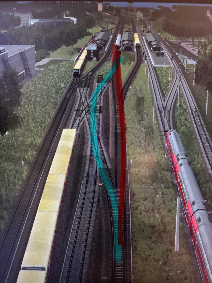 Mögliches Problem im Schnellfahrszenario Hermannstraße - Spindlersfeld, Station Schöneweide: Anstatt dass mein Zug auf die rote Linie geleitet wurde, wurde ich angewiesen, auf der blauen Linie zu fahren.