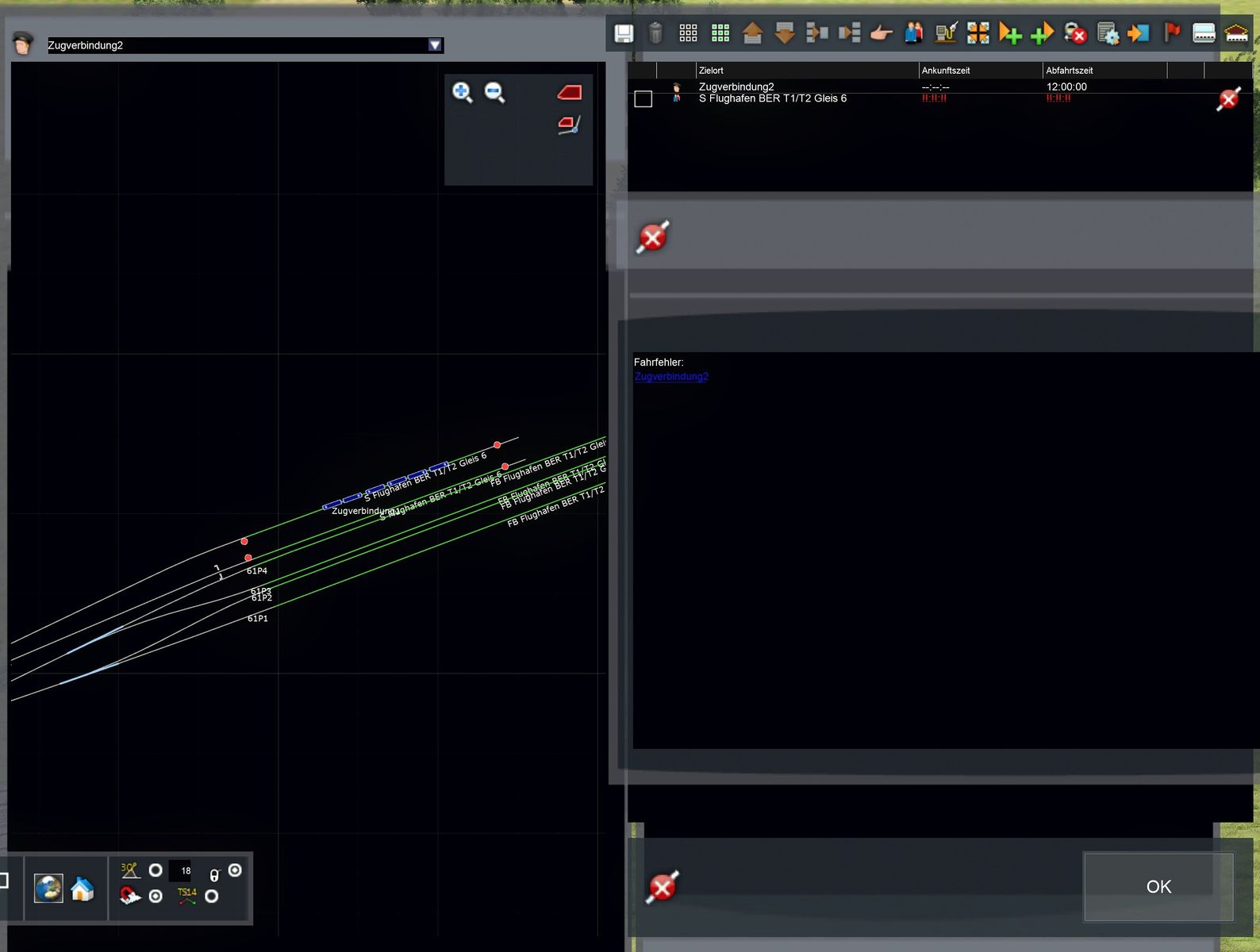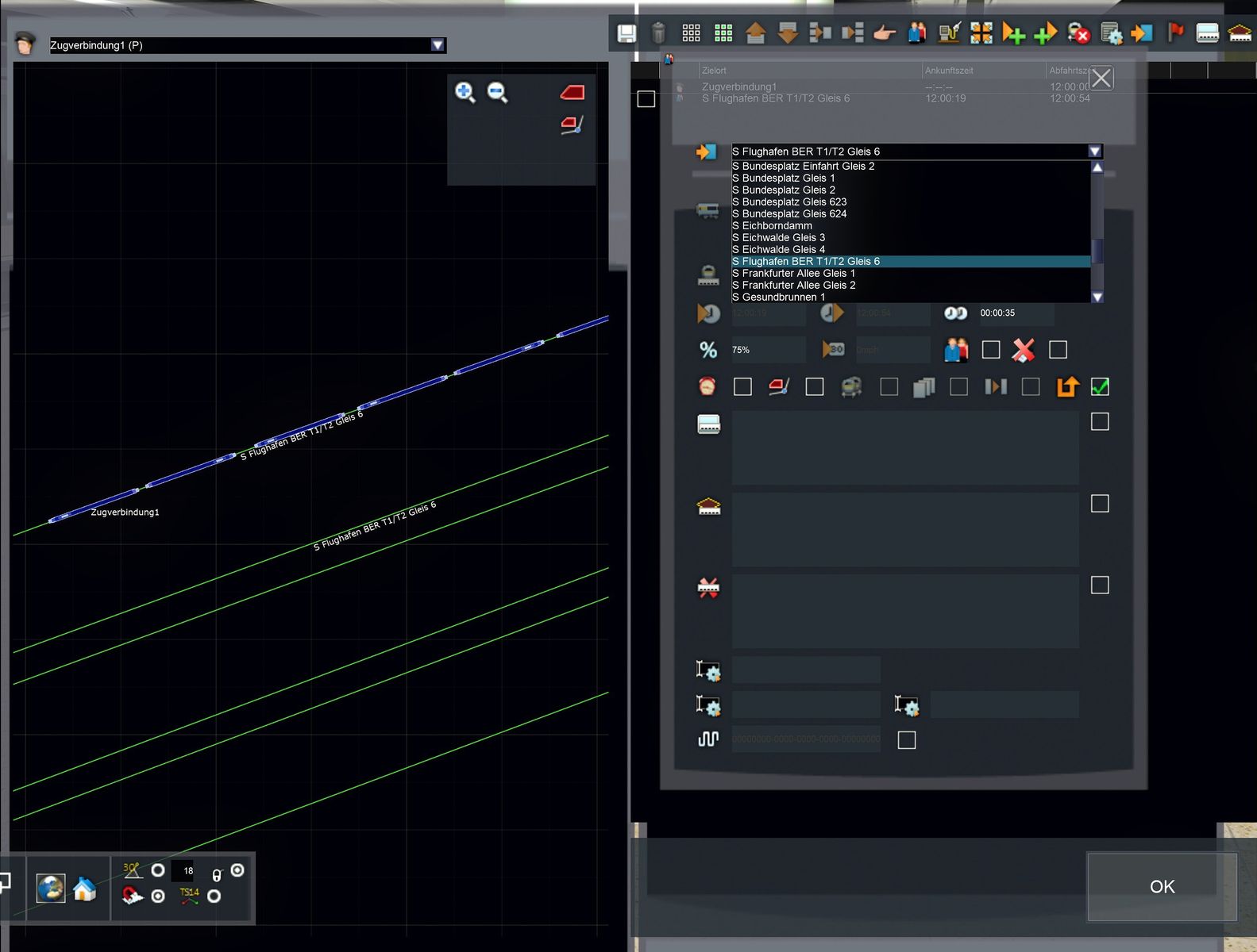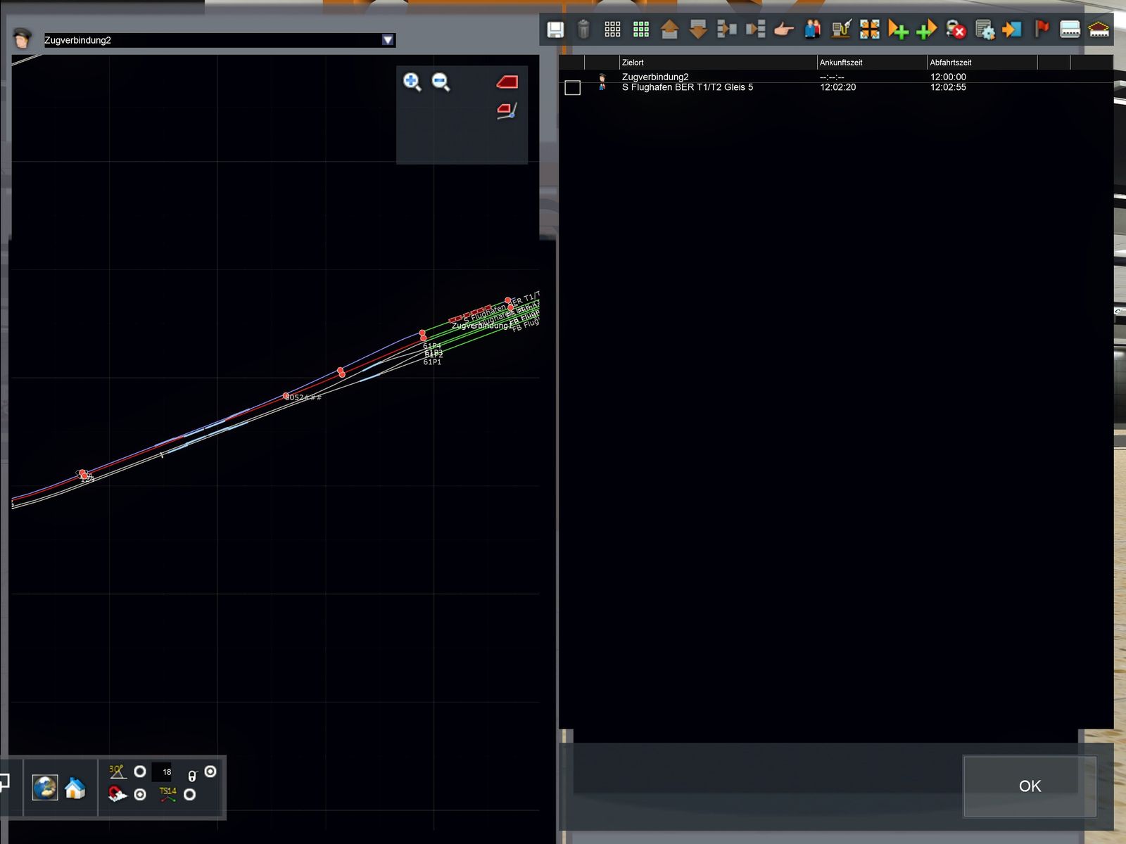 ...die Züge können nur einen Bahnsteig anfahren (ich habe auf den unteren S-Bahnsteig geklickt und der will trotzdem den oberen "besetzten" Bahnsteig anfahren)