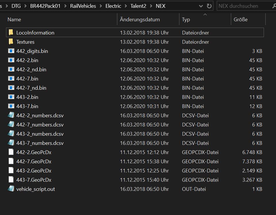 Der Pfad ist tatsächlich mit dem Assets\DTG\BR442Pack01 angegeben. Das Repaint ist in einem Repaintpaket mitinbegriffen. Zu finden über Dutchsims. https://dutchsims.nl/viewtopic.php?f=51&t=1362