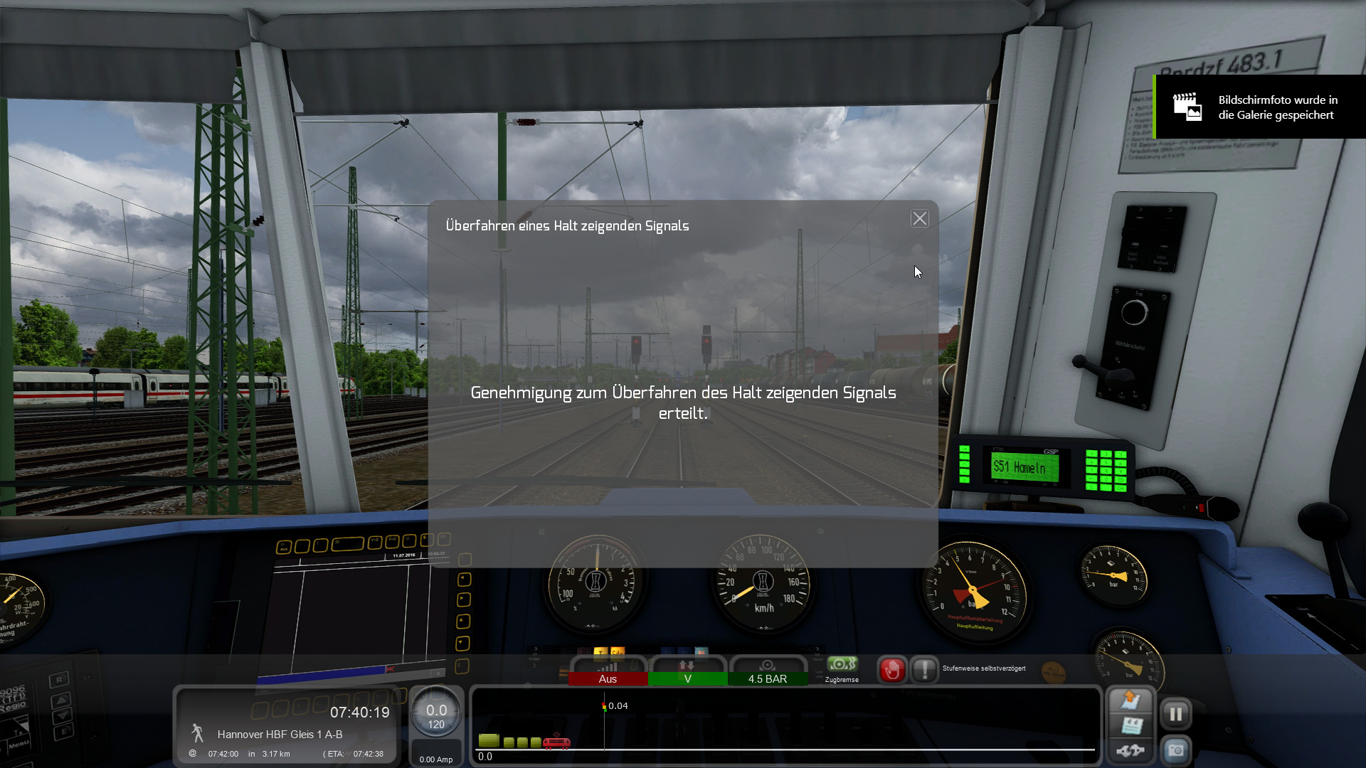Verwende ich die TAB-Taste so bekomme ich zwar ein "Befehl erteilt" aber das Signal bleibt rot auch ganz ohne Ersatzsignal....