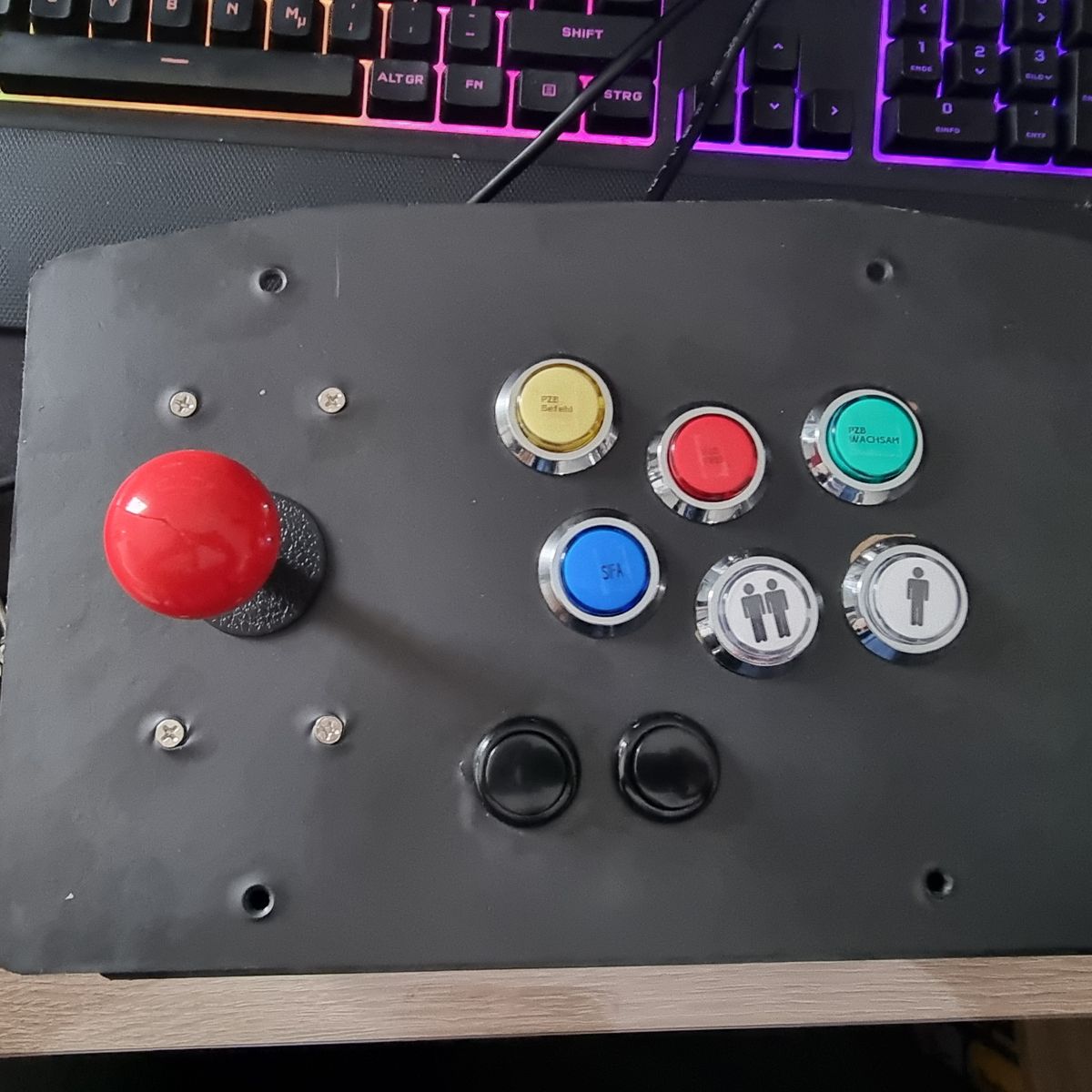 Wie hast du das Problem mit den Wippschaltern gelöst ? Die Arcade Buttons sind ja momentane, selbstrückstellende Drucktaster.