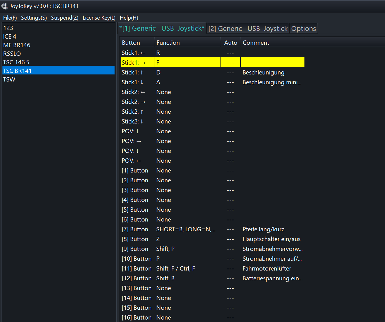 . Oder der Tempomat bei der Bernina...Was du noch versuchen kannst ist im Spiel die Taste (Beispiel F) umzubelegen und die "neue" Taste auf den Stick mit JoytoKey zu legen. Versuch macht klug.