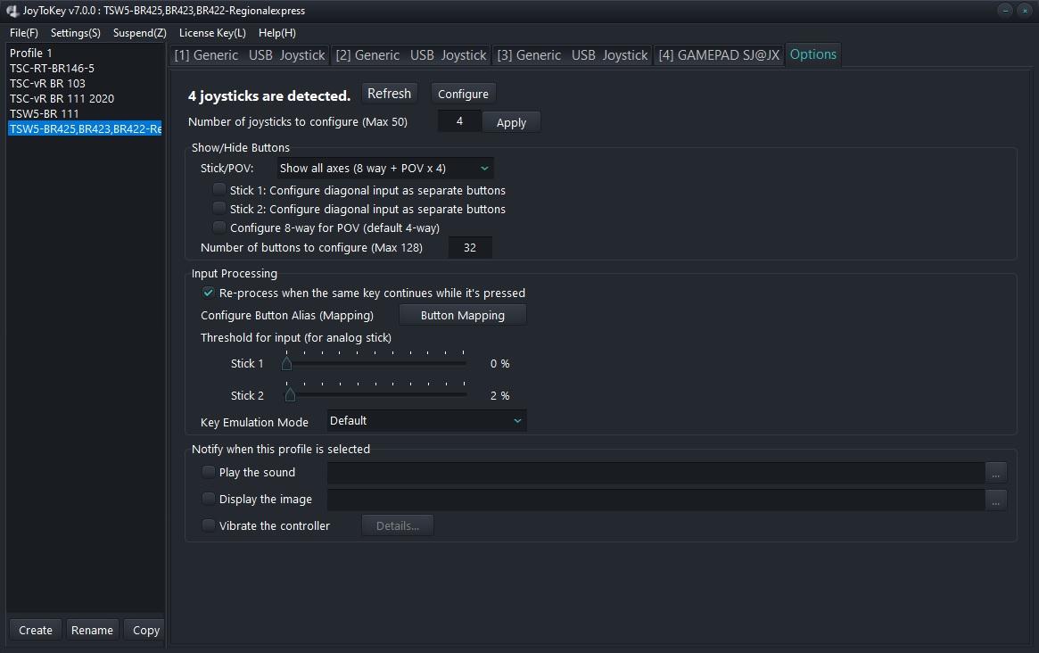 Vermutung meinerseits wäre, da bei dir ja die Joystick´s und Tasten über separate Interfaces laufen und dann über den Hub, welcher wieder herum bei "Joy-to- Key" als ein Gerät erfasst wird.