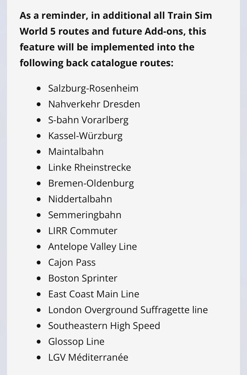 • Hier wurde aber klar gesagt das sich dies erstmal nur auf die neuen TSW5 Strecken bezieht.