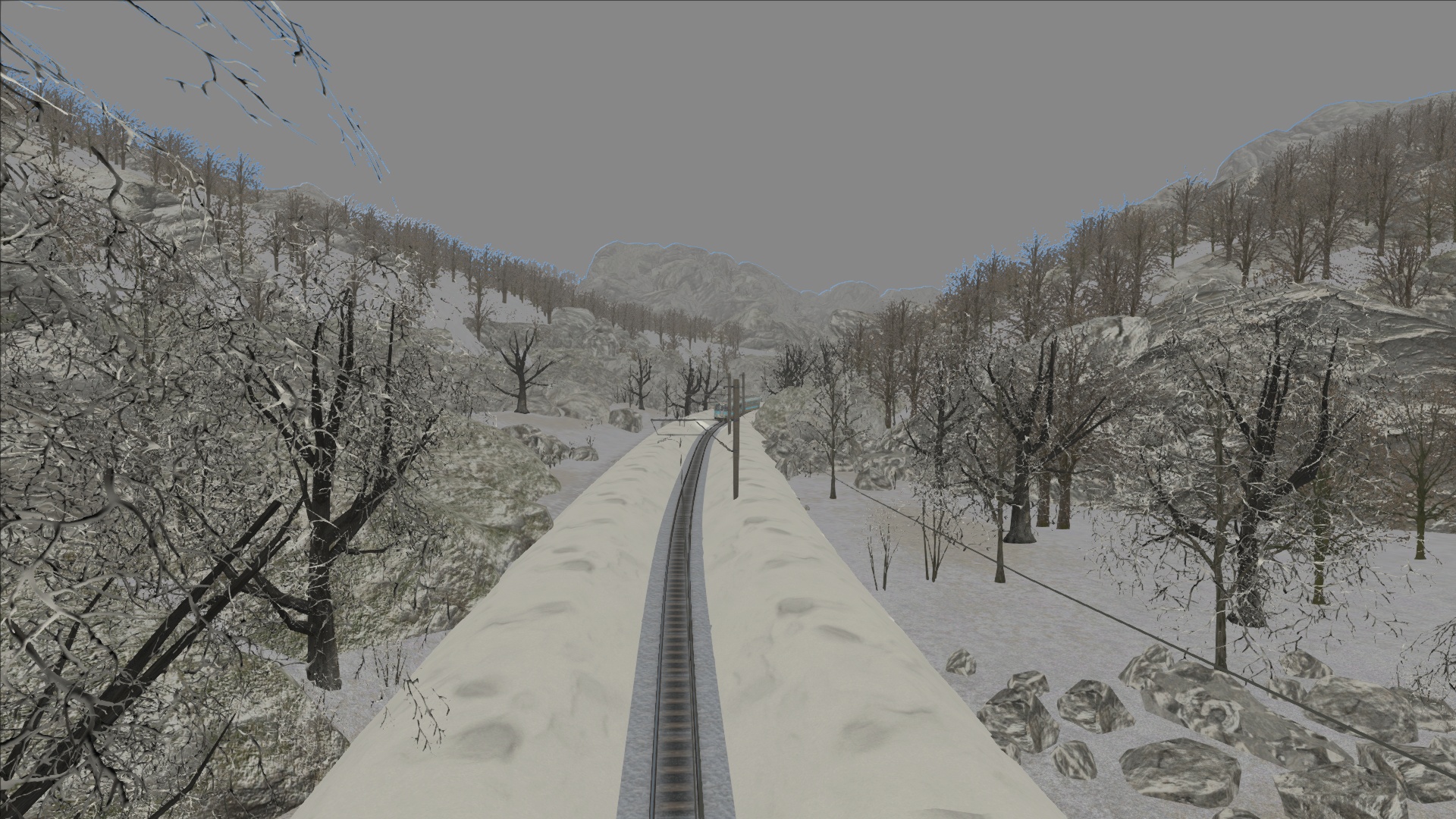 Gibt es eine Möglichkeit, das blaue oder Weiß Leuchten um Berge und Objekte wie Oberleitungen bei Nebel oder schlechtem AP-Wetter zu beheben? Ich habe unten einige Bilder gepostet, die zeigen, wie es auf einer UK Route bei Winterwetter aussieht, aber ich habe das gleiche Problem auf anderen Bergrouten bei ähnlichem Wetter (Regen, Nebel, Schneefall). Ich habe keine Ahnung, was das verursacht oder ob es einen Patch zur Behebung des Problems oder gar ein Update von Armstrong Powerhouse gibt. Ich habe diese Problem bei QD scenarios aber auch in anderen Optionen.