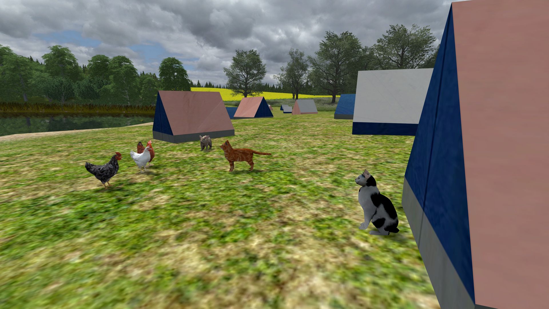 Der kleine Mops ist ganz schön mutig sich mit einem gereizten Schwan anzulegen (beide von Wotawally). Die Gruppe Schwan mit Enten und Rehe sowie Hirsche (animiert) + Dame kommen aus dem Hause 3DZUG (Aufgabentools Tierwelt). Der Rest stammt aus dem Hause Wotawally. Es könnte ruhig noch an bzw. unterschiedlichen heimischen Tieren im TSC geben. ice hatte auch schon so einiges in den letzten Jahren in den Screenshots-Threads gezeigt. Vielleicht lässt Du Deine Tierwelt (besonders Dein Tiger) auch einmal für alle im TSC kostenlos frei.