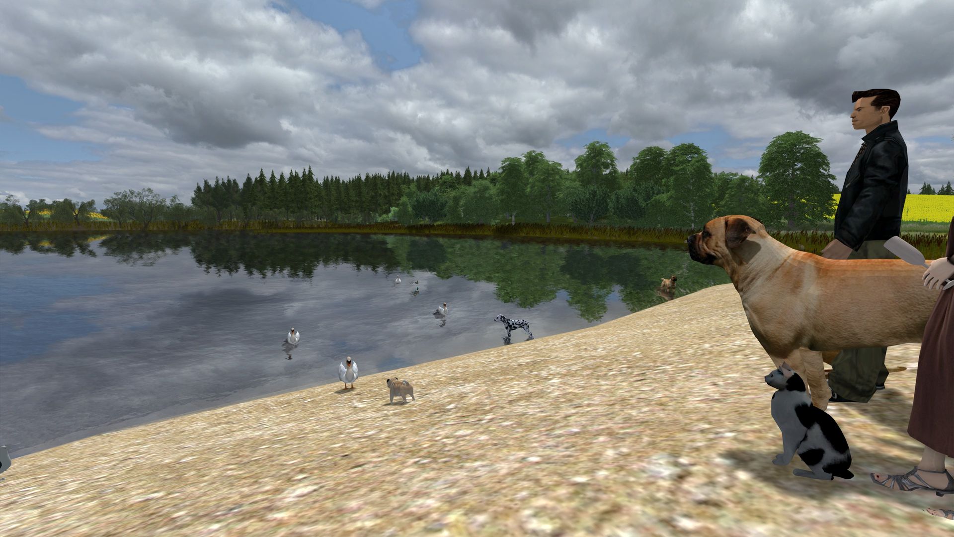 Der kleine Mops ist ganz schön mutig sich mit einem gereizten Schwan anzulegen (beide von Wotawally). Die Gruppe Schwan mit Enten und Rehe sowie Hirsche (animiert) + Dame kommen aus dem Hause 3DZUG (Aufgabentools Tierwelt). Der Rest stammt aus dem Hause Wotawally. Es könnte ruhig noch an bzw. unterschiedlichen heimischen Tieren im TSC geben. ice hatte auch schon so einiges in den letzten Jahren in den Screenshots-Threads gezeigt. Vielleicht lässt Du Deine Tierwelt (besonders Dein Tiger) auch einmal für alle im TSC kostenlos frei.